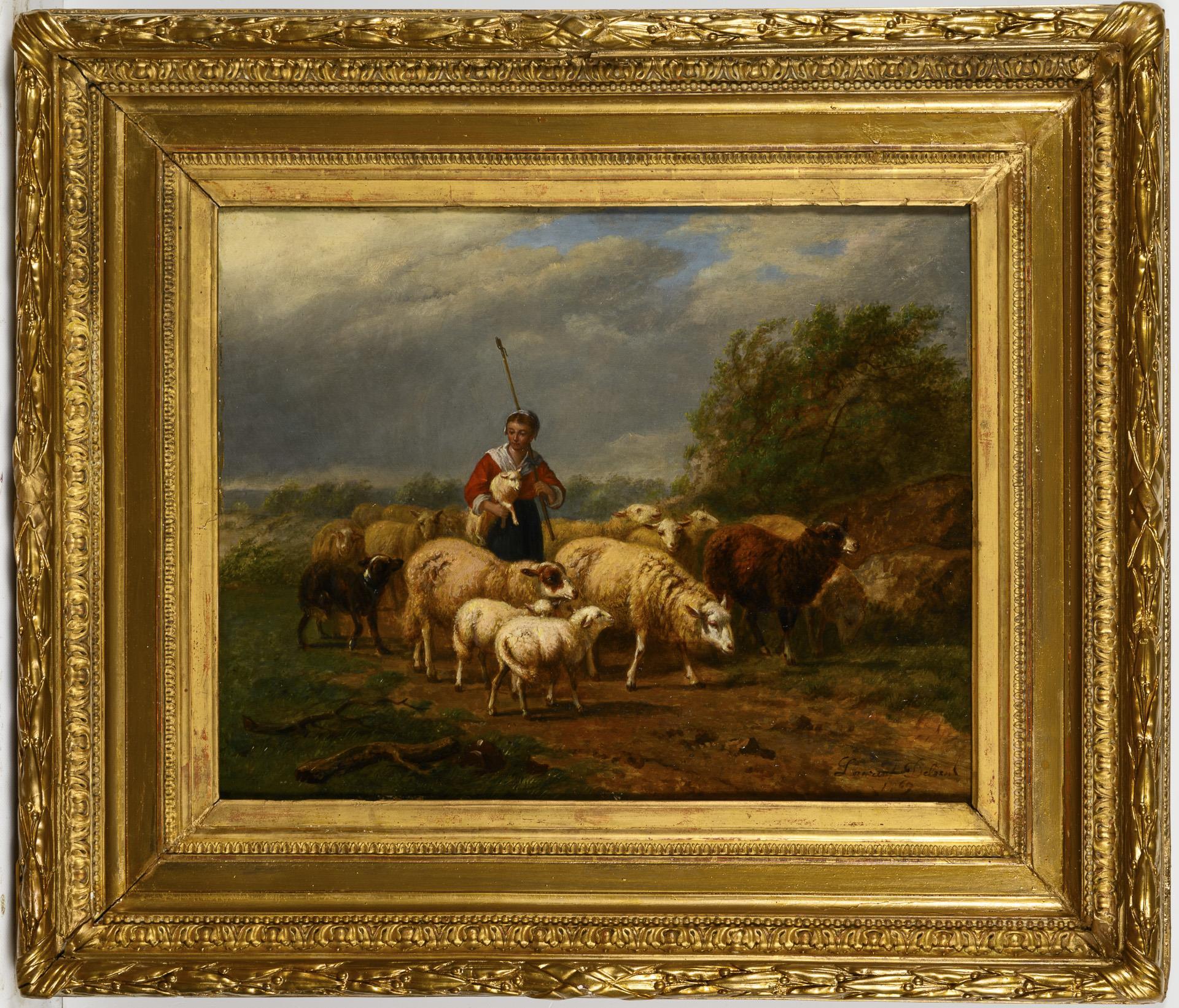 Junge Schäferin mit Herde