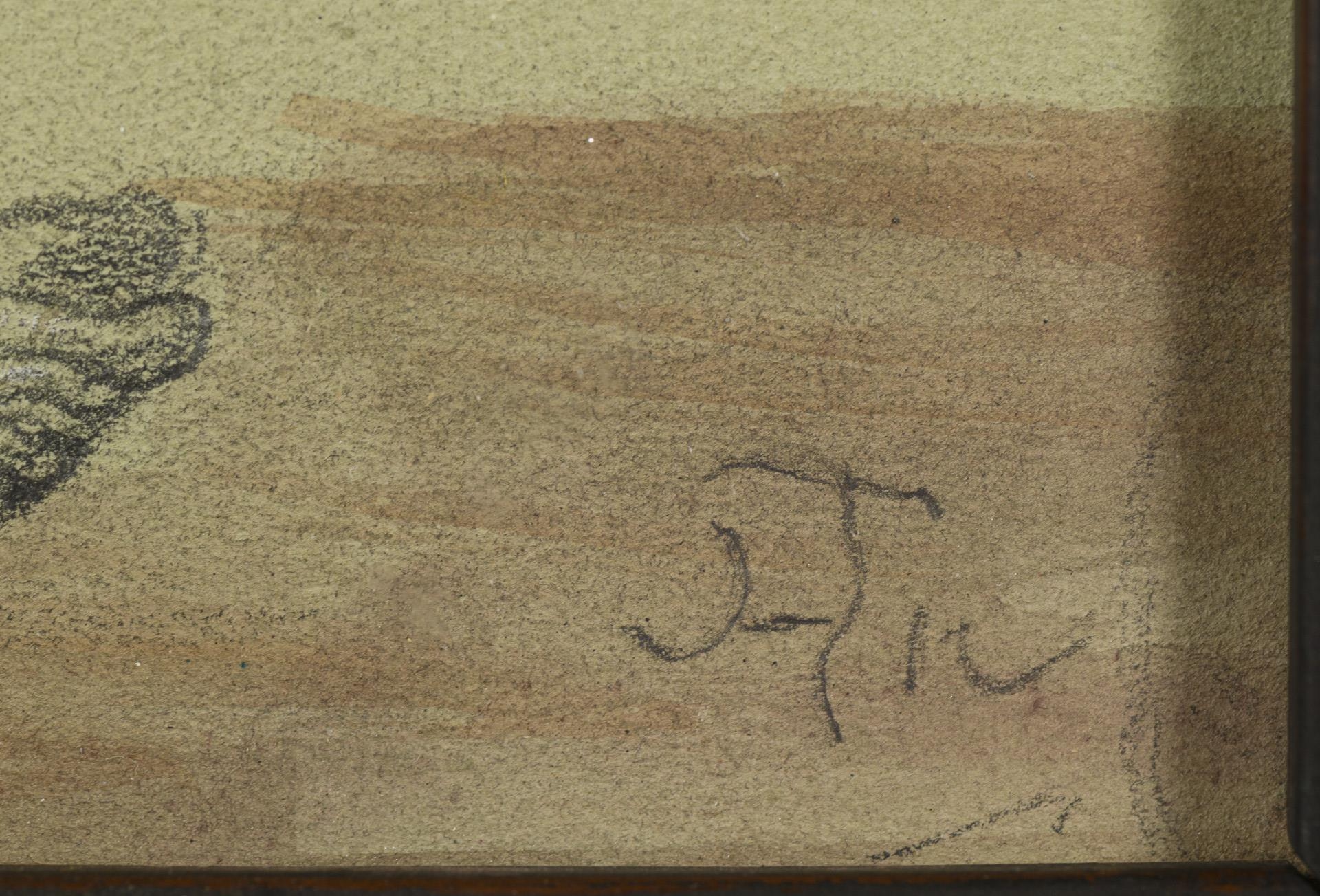 Auf dem getönten Blatt leichte Spuren einer weiteren Skizze.