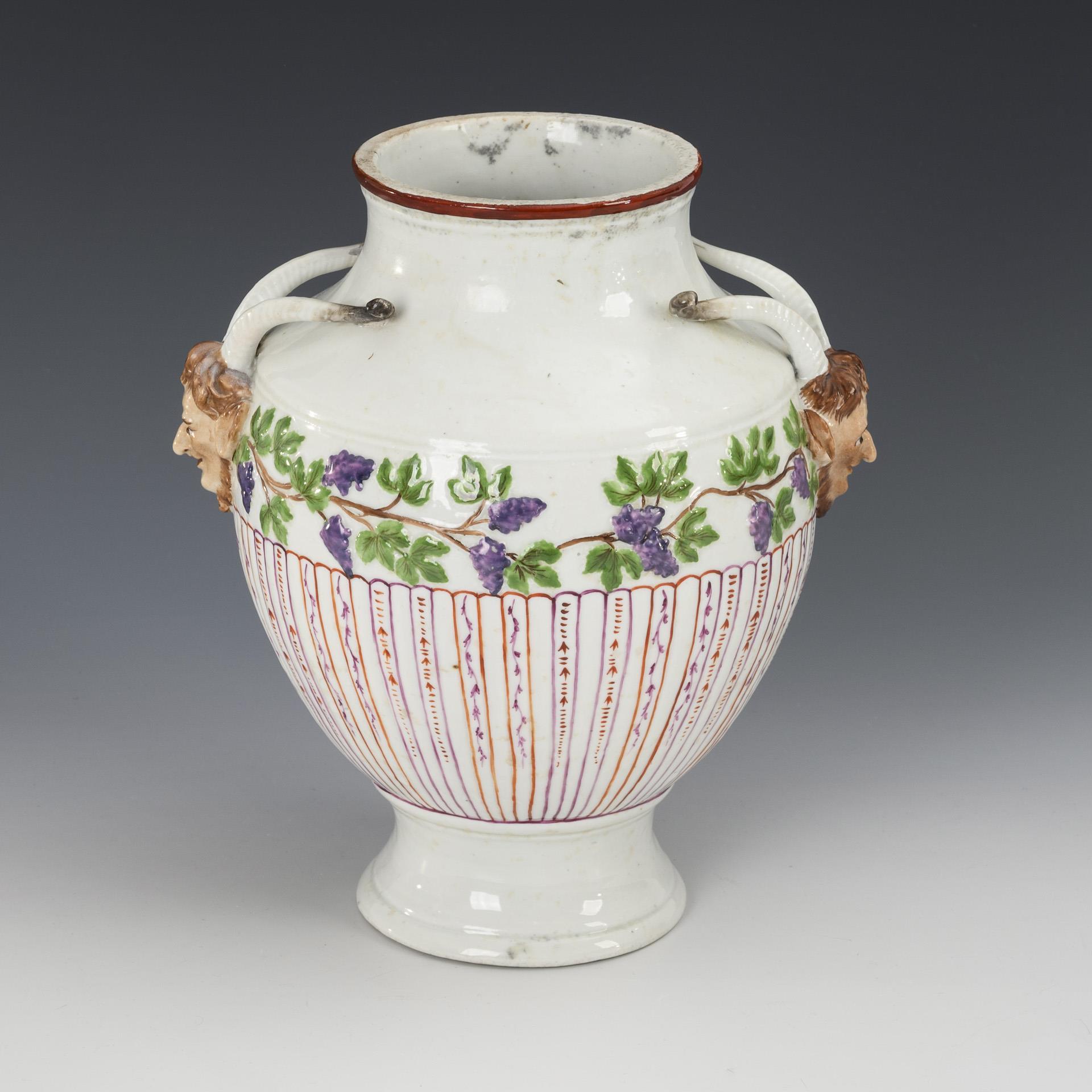 Seltene barocke Vase mit Maskaronhandhaben. Aelteste Volkstedter.