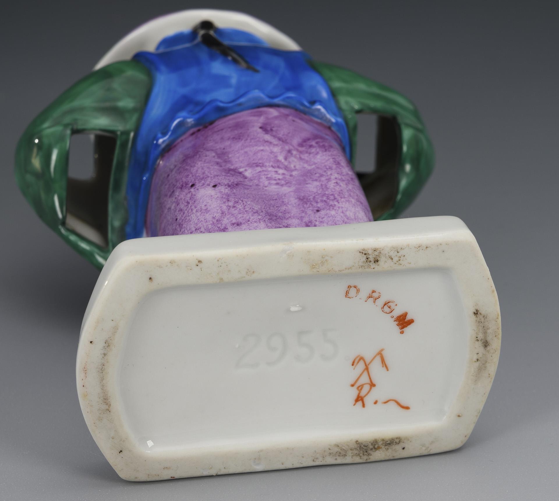 Stehende Figur in chinesischer Kleidung mit zwei Öffnungen zum Einstellen einer Zahnbürste.