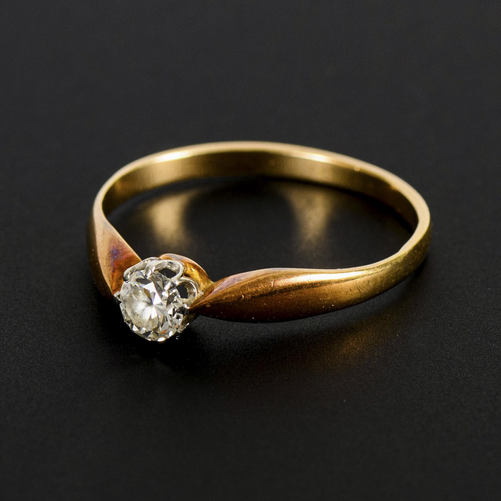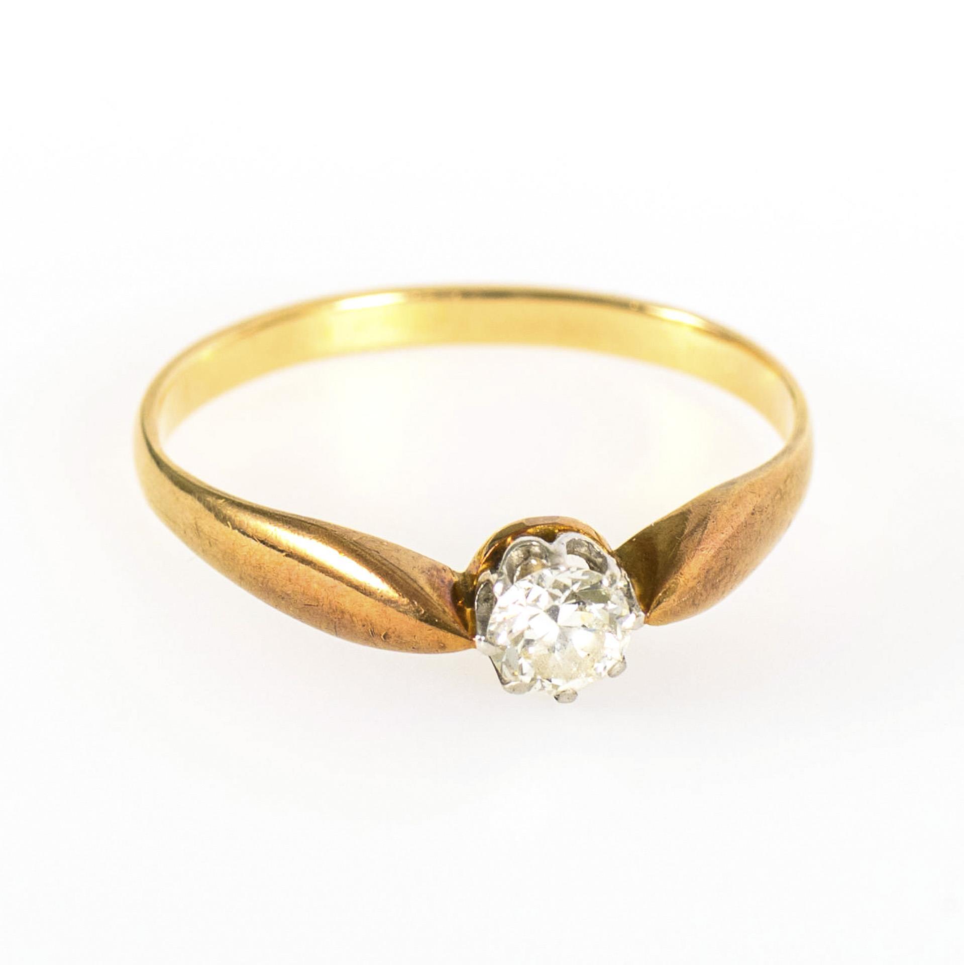 Gelbgold 333 geprüft, Brillant ca. 0,2 ct. Brillant Durchmesser ca. 4 mm. Ringgröße 59,5. 2,3 g.
