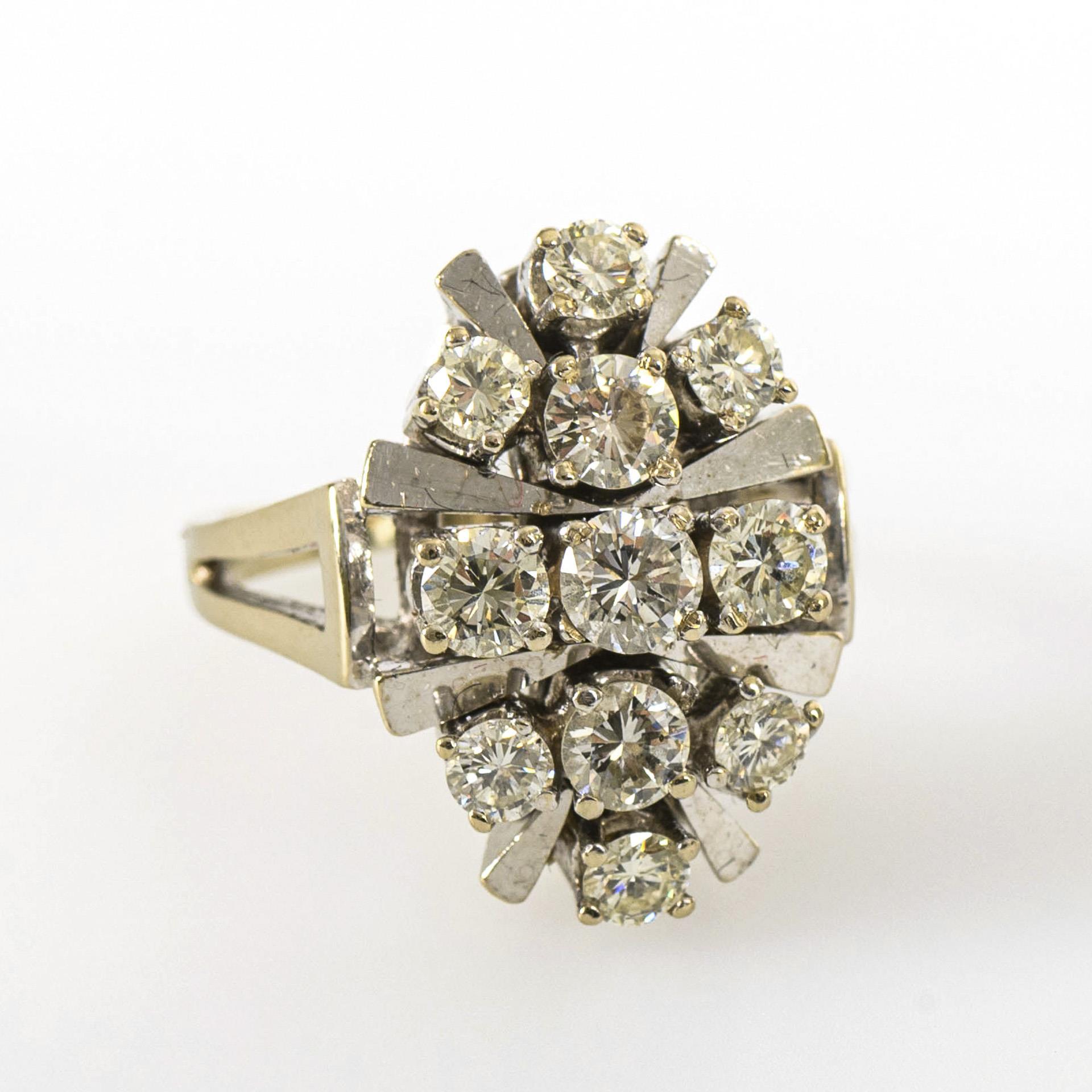 Weißgold 585 gestempelt; Brillanten zusätzlich gestempelt, zusammen ca. 0,75 kt. Ringgröße 49. 7,2 g.