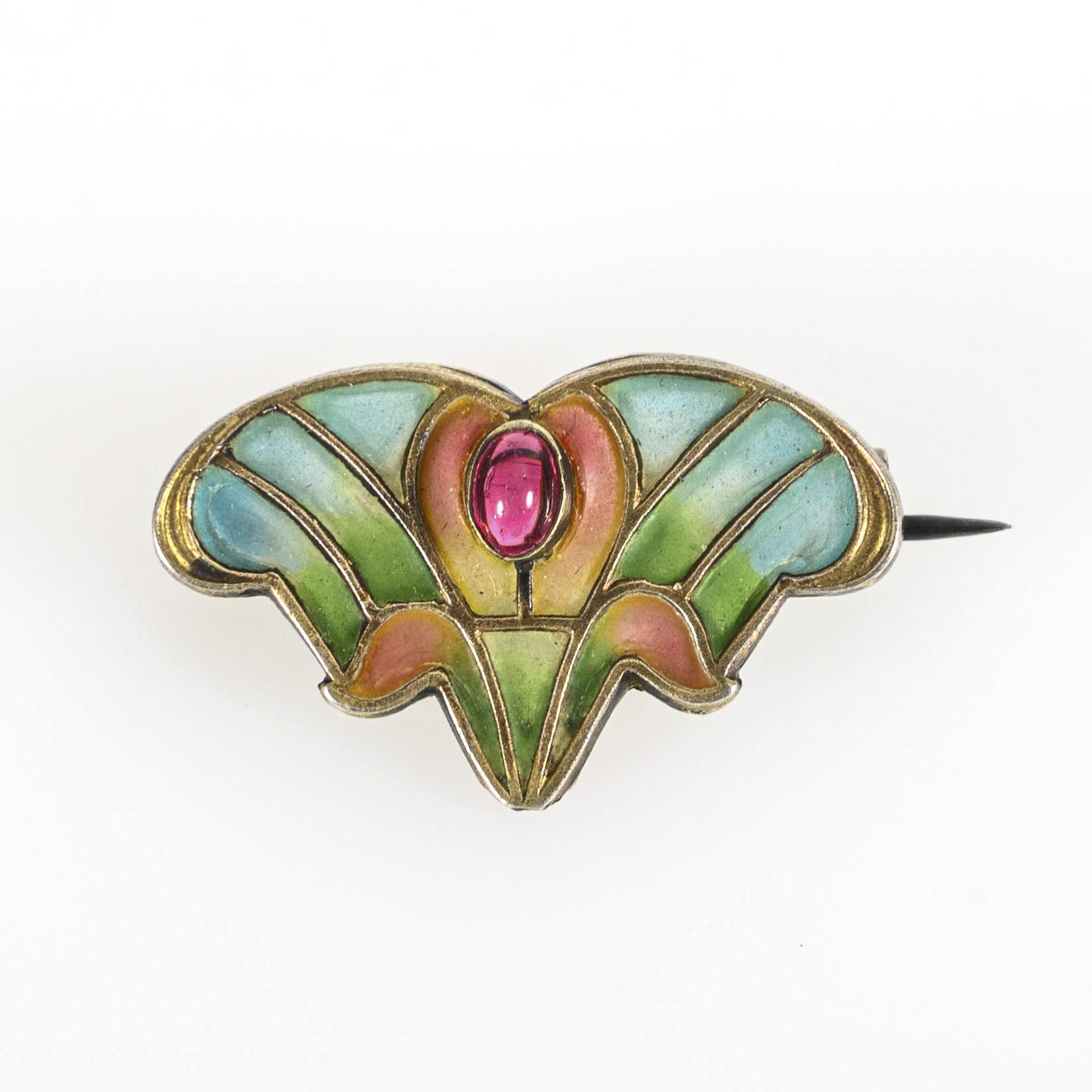Jugendstil-Brosche mit Fenster-Emaille.