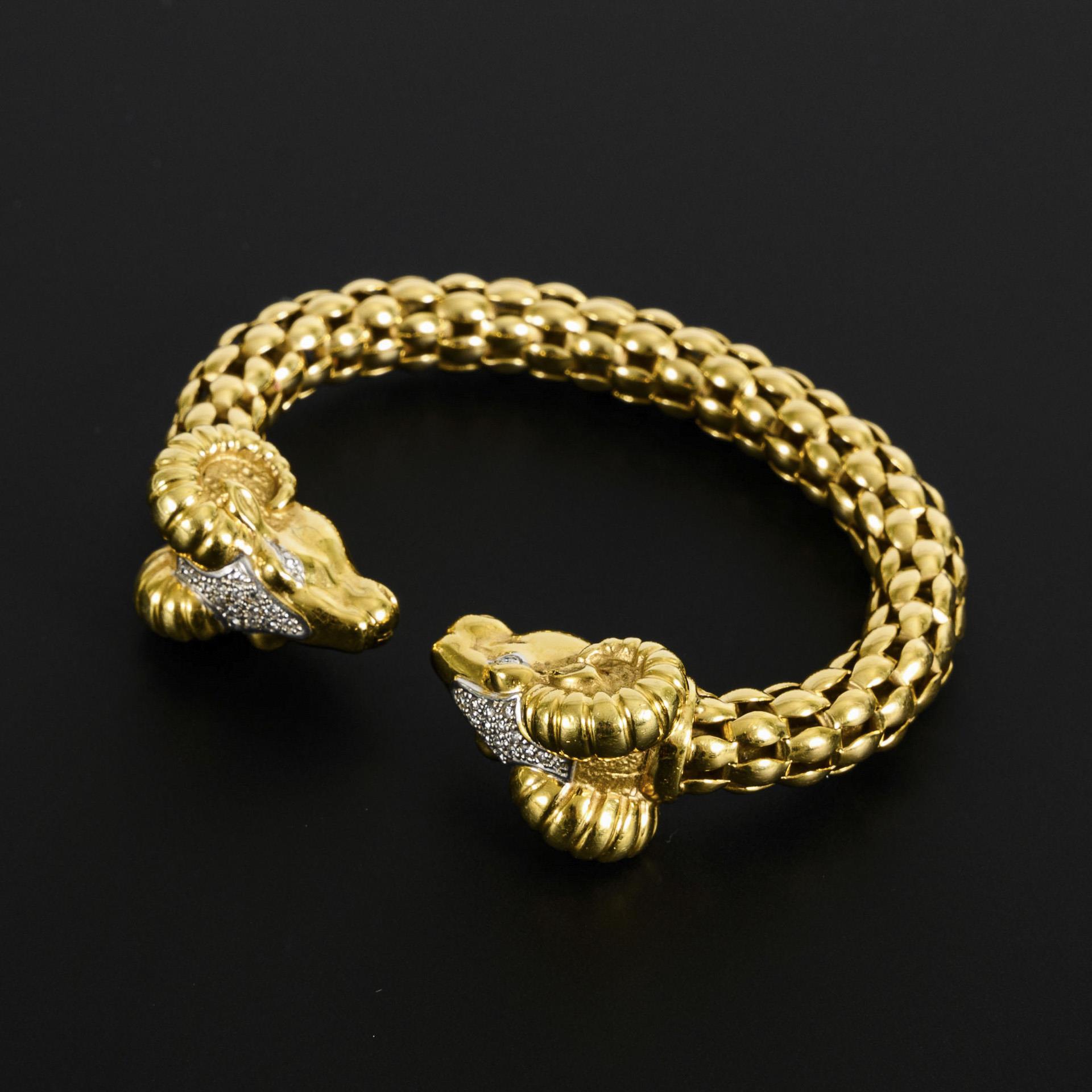 Imposante Einzelanfertigung, die Widderköpfe mit pavégefassten Brillanten besetzt.