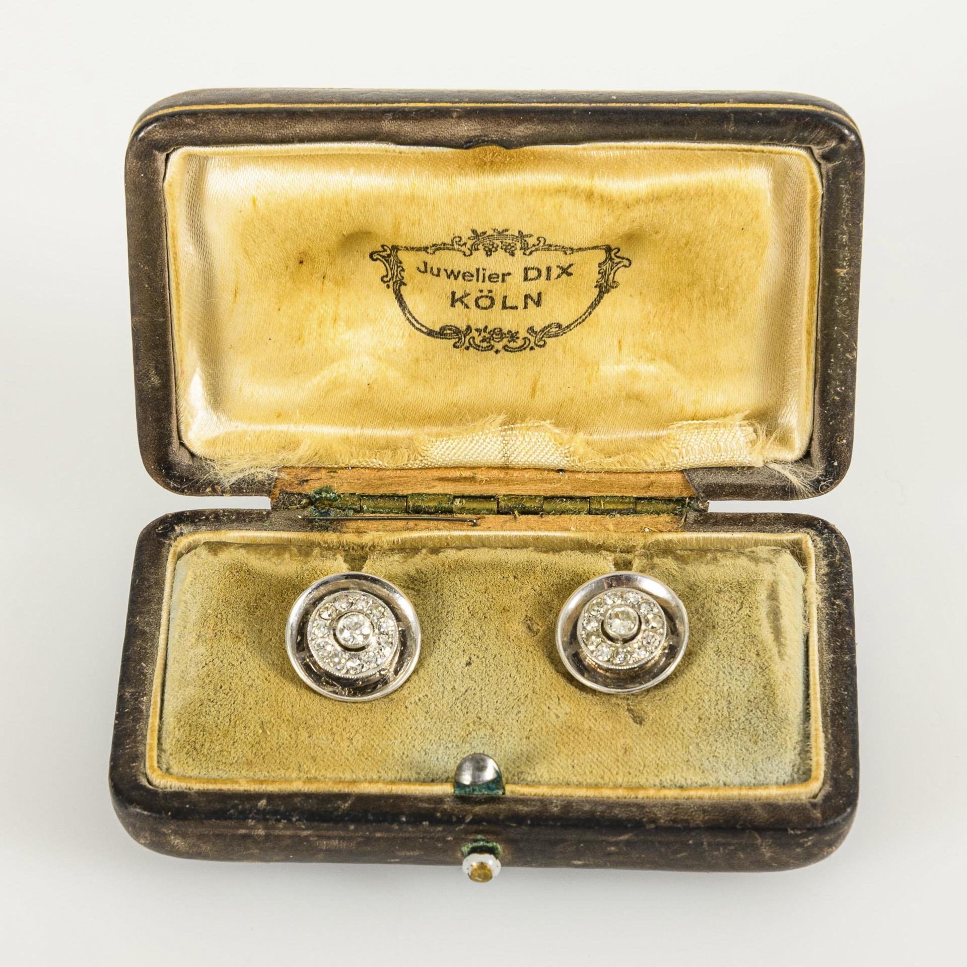 Weißgoldohrringe mit Brillanten in antikem Etui.