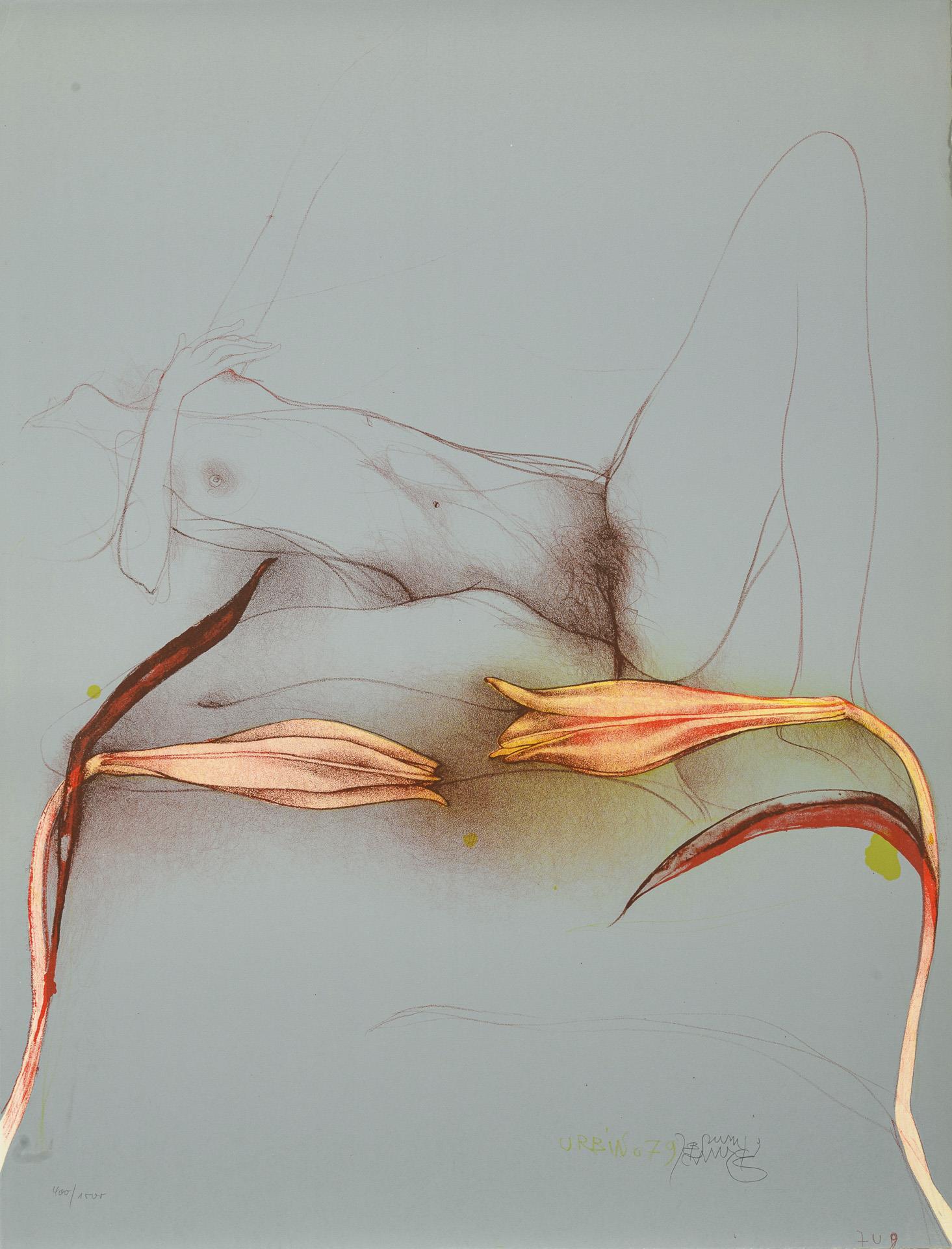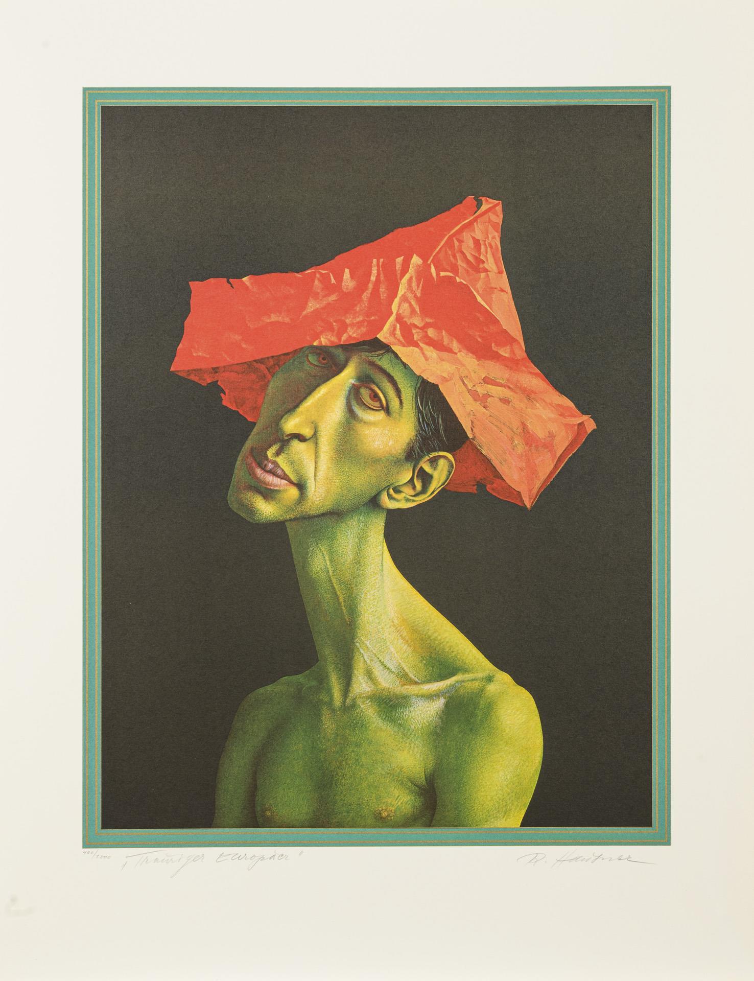 "Eine Mappe zum zehnjährigen Bestehen der Edition Volker Huber". 4 Blätter: Paul Wunderlich: "Sphinx und Handschuh" / Horst Antes: "Sitzende Figur" / Rudolf Hausner: "Trauriger Europäer" / Bruno Bruni: "Paradiesvogelblume". Alle nummeriert 400/1500.