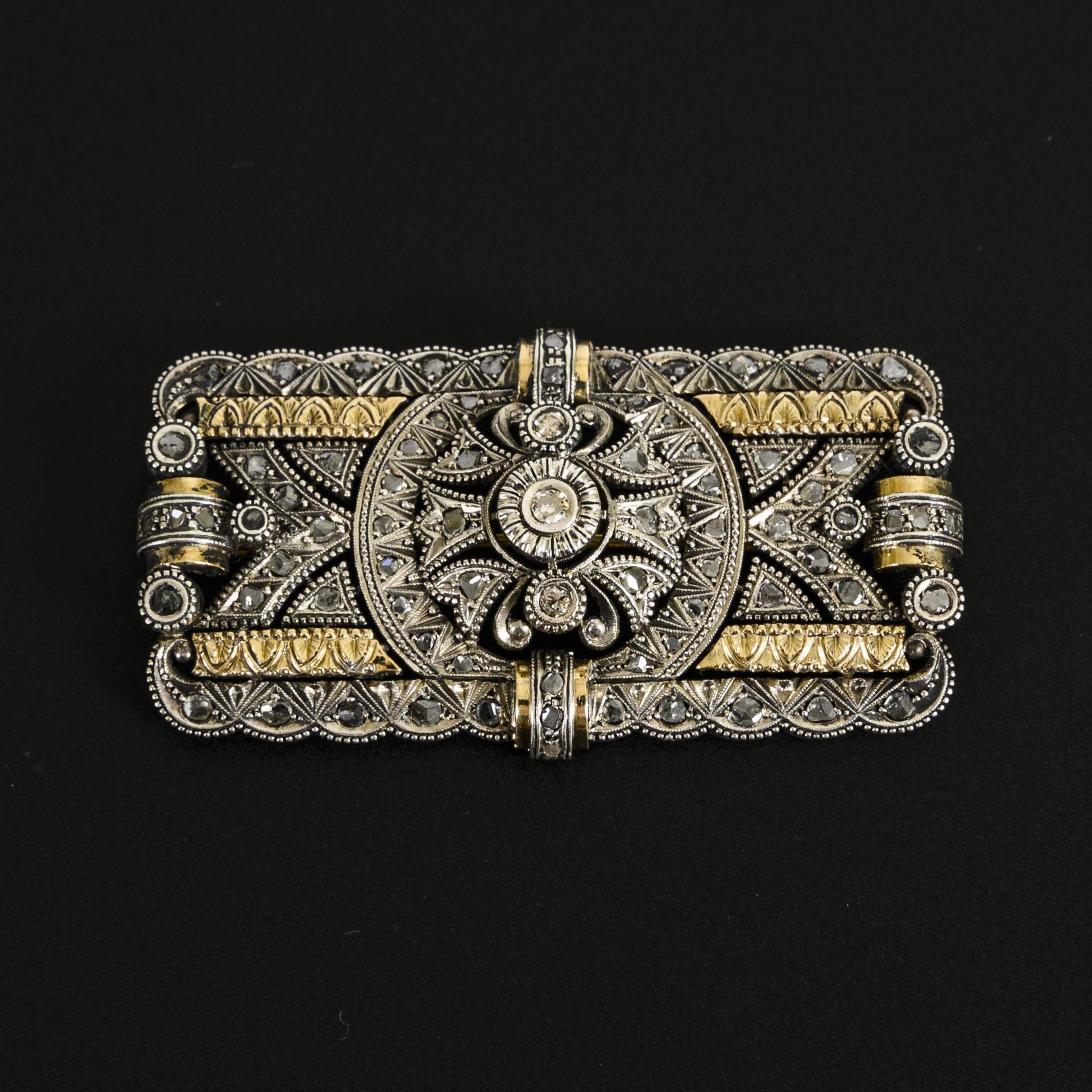 Historisierende Brosche mit Altschliff-Brillanten.