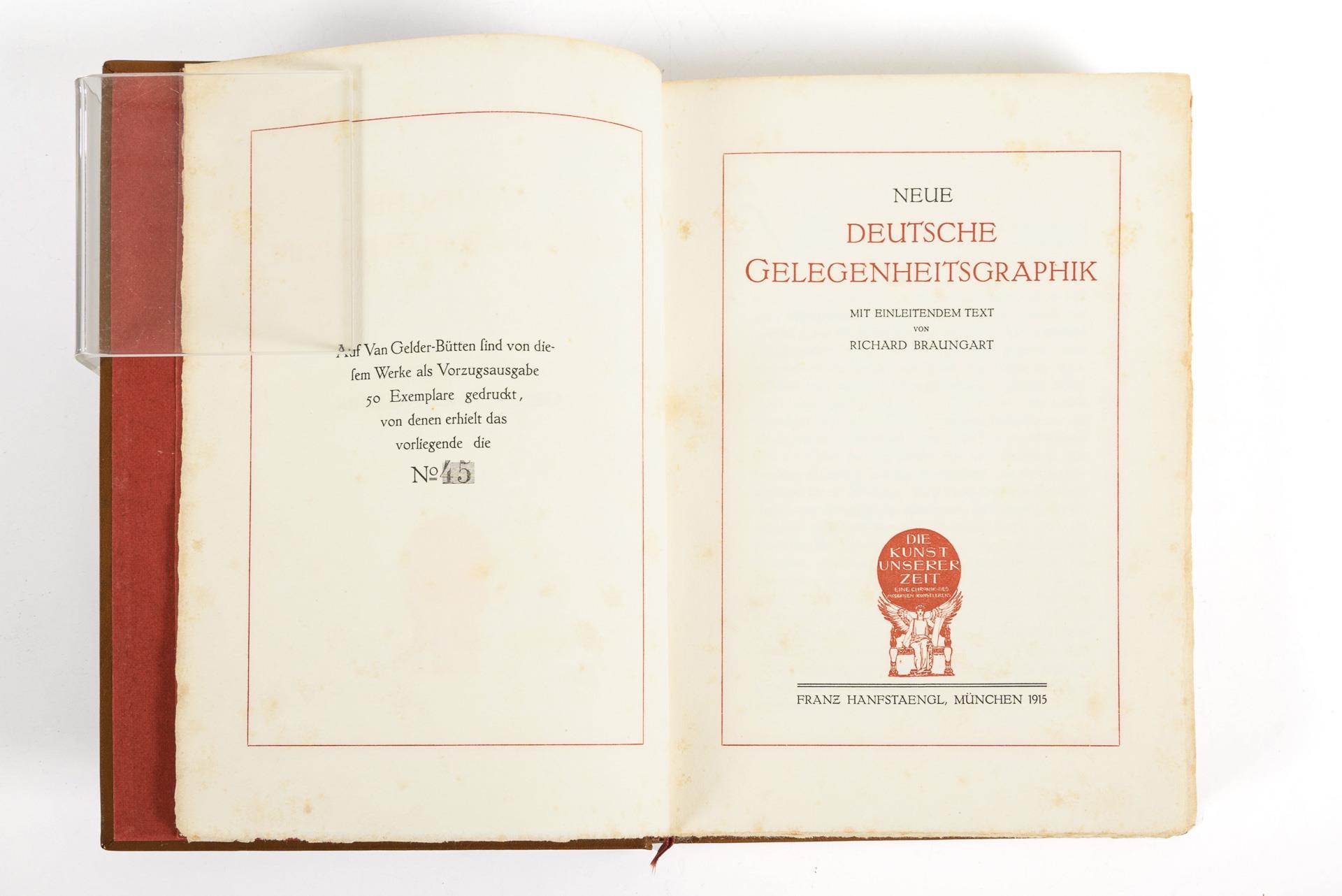 Nummerierte Vorzugsausgabe 45/50 Exemplaren. Einleitung von Richard Braungart, 21 Textseiten. Erste Folge. Wohl 69 Arbeiten auf einzelnen Tafeln. Im Ledereinband. Nicht kollationiert. Im Schnitt schwach stockfleckig.