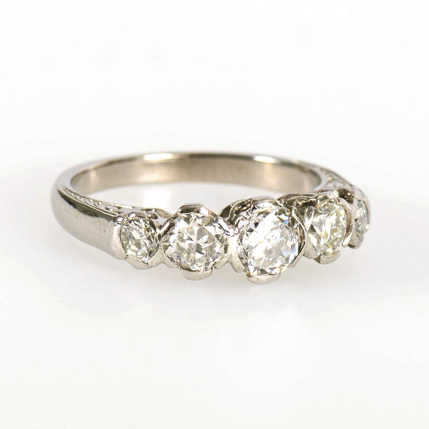 Klassischer, hochwertig verarbeiteter Weißgoldring, besetzt mit 5 Brillanten.