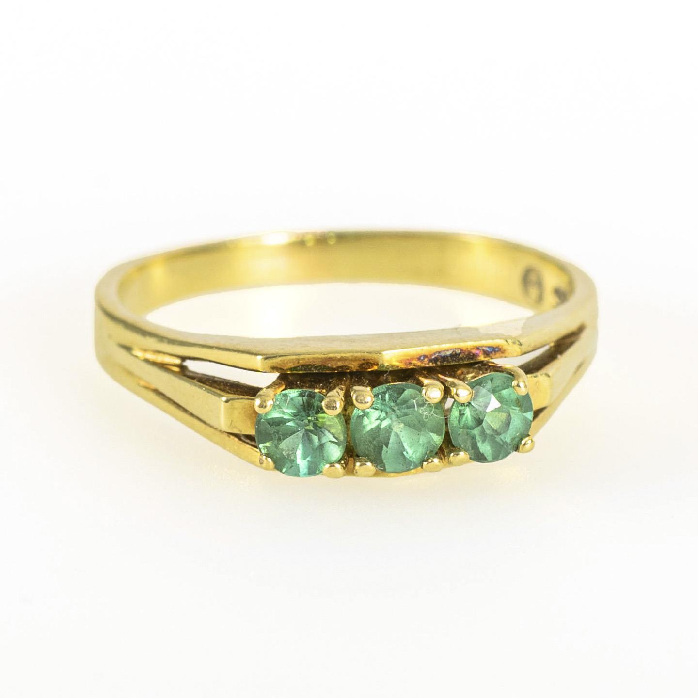 3 chatongefasste Peridots auf eleganter 3-gliedriger Schiene.