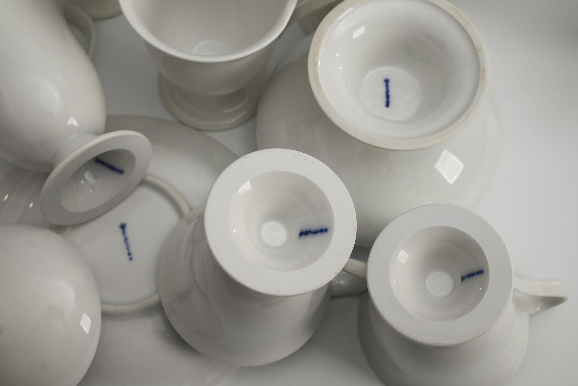 39 Teile. Form "Campaner". Kaffeekanne (H 22 cm), Milchkännchen (H 9 cm), Zuckerdose (H 14 cm), 12 Kaffeetassen, 12 Untertassen, 12 Frühstücksteller. Leichte Gebrauchsspuren auf den Tellern.