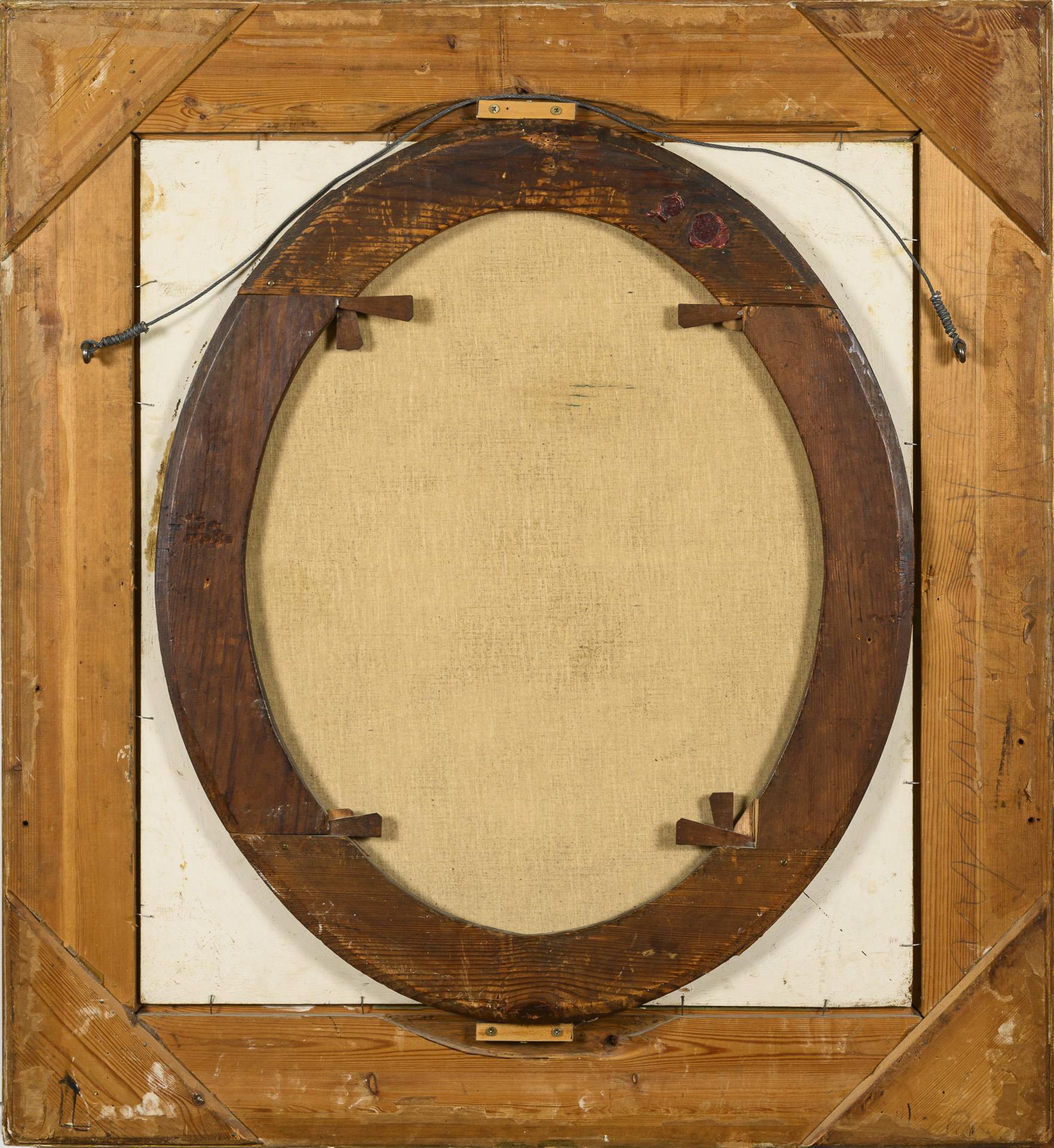 77 x 64 cm. Gerahmt : 98,5 x 90 cm (Goldstuckrahmen); 15,5 kg.