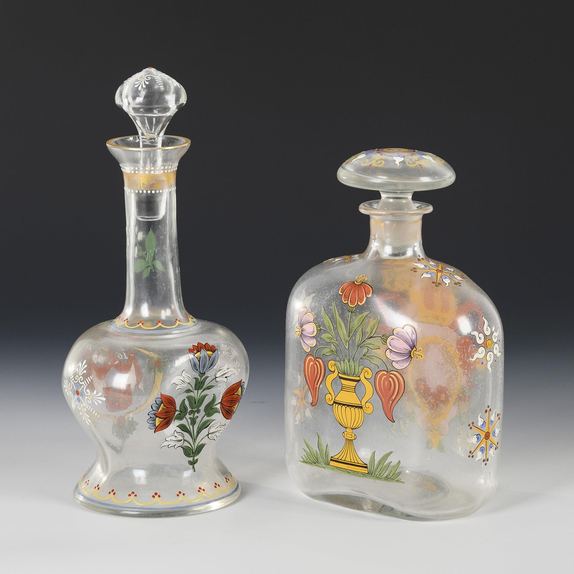2 Karaffen mit Emailmalerei.