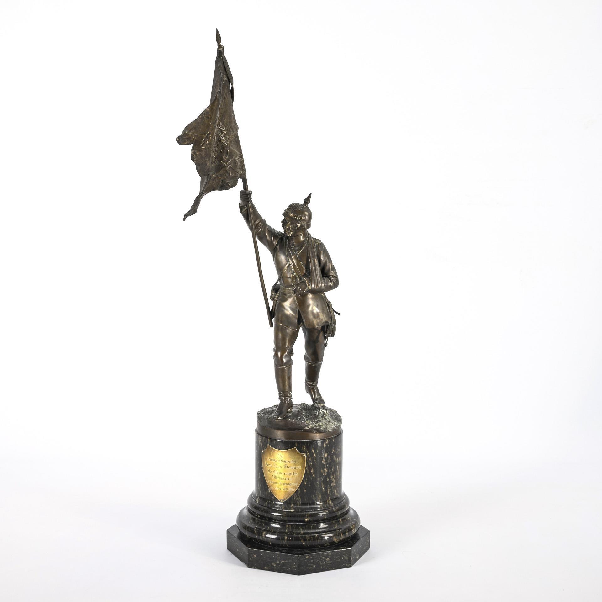 Sie befinden sich hier: Startseite Kategorien Skulpturen Offiziersgeschenk: Verwundeter Offizier mit Fahne ("Hadeln-Statuette")