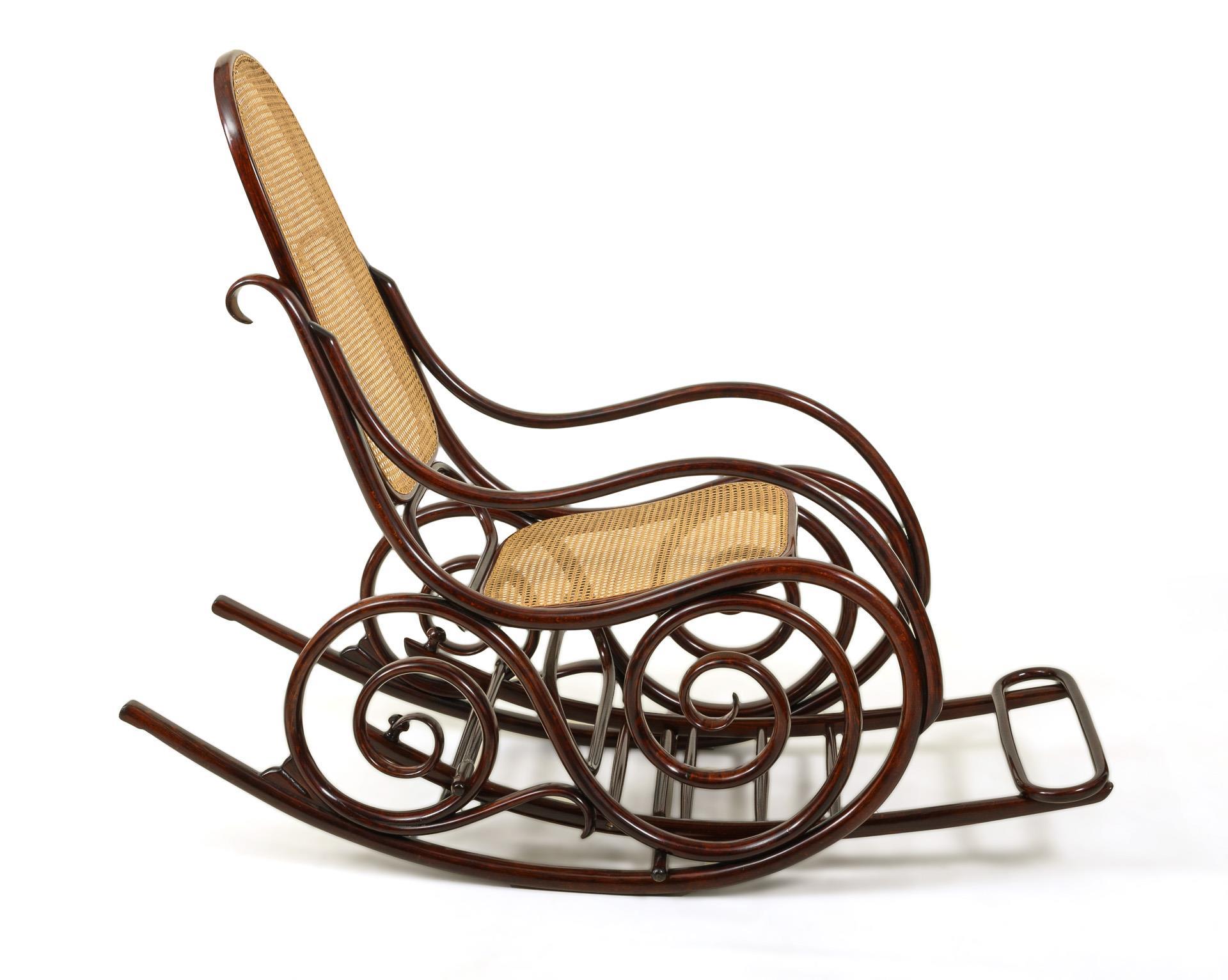 Bugholz-Schaukelstuhl mit separatem Fußteil. Jacob & Joseph Kohn.