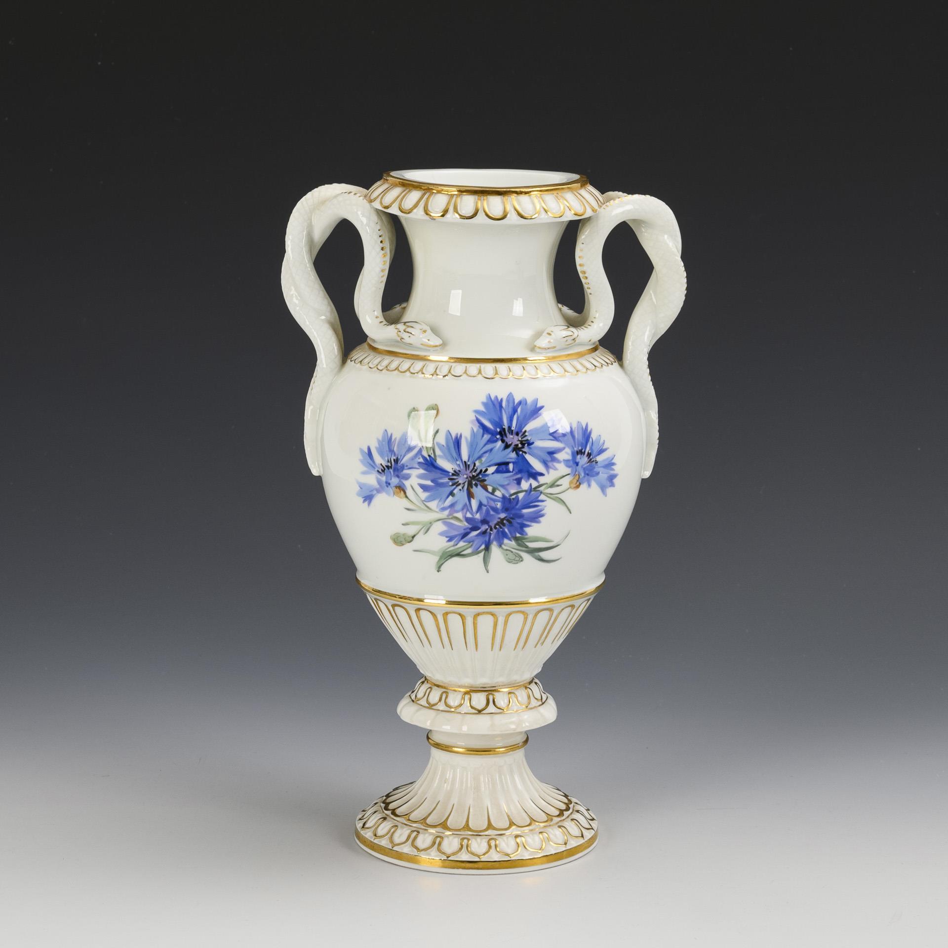 Schlangenhenkelvase mit Kornblumenmalerei. Meissen.