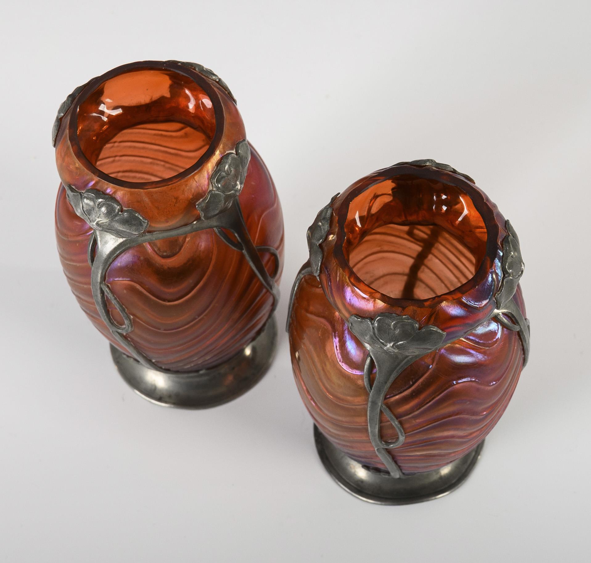 Paar Jugendstil-Vasen mit floralen Zinnmontierungen.