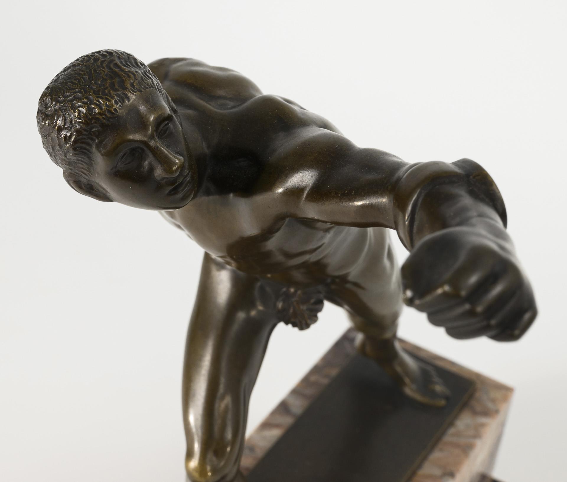 Der nackte Schwertkämpfer im kraftvollen Ausfallschritt. Nach dem antiken Original im Louvre hier wieder in Bronze gegossen, jedoch mit Feigenblatt.