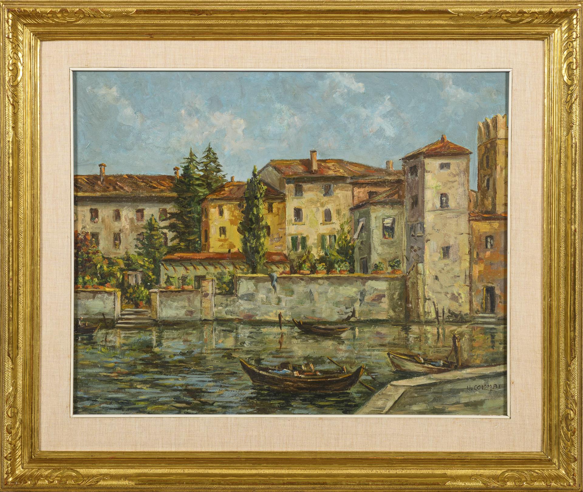 Boote an den Anlegestellen im Kanal im warmen Sonnenschein unter blauem Himmel.