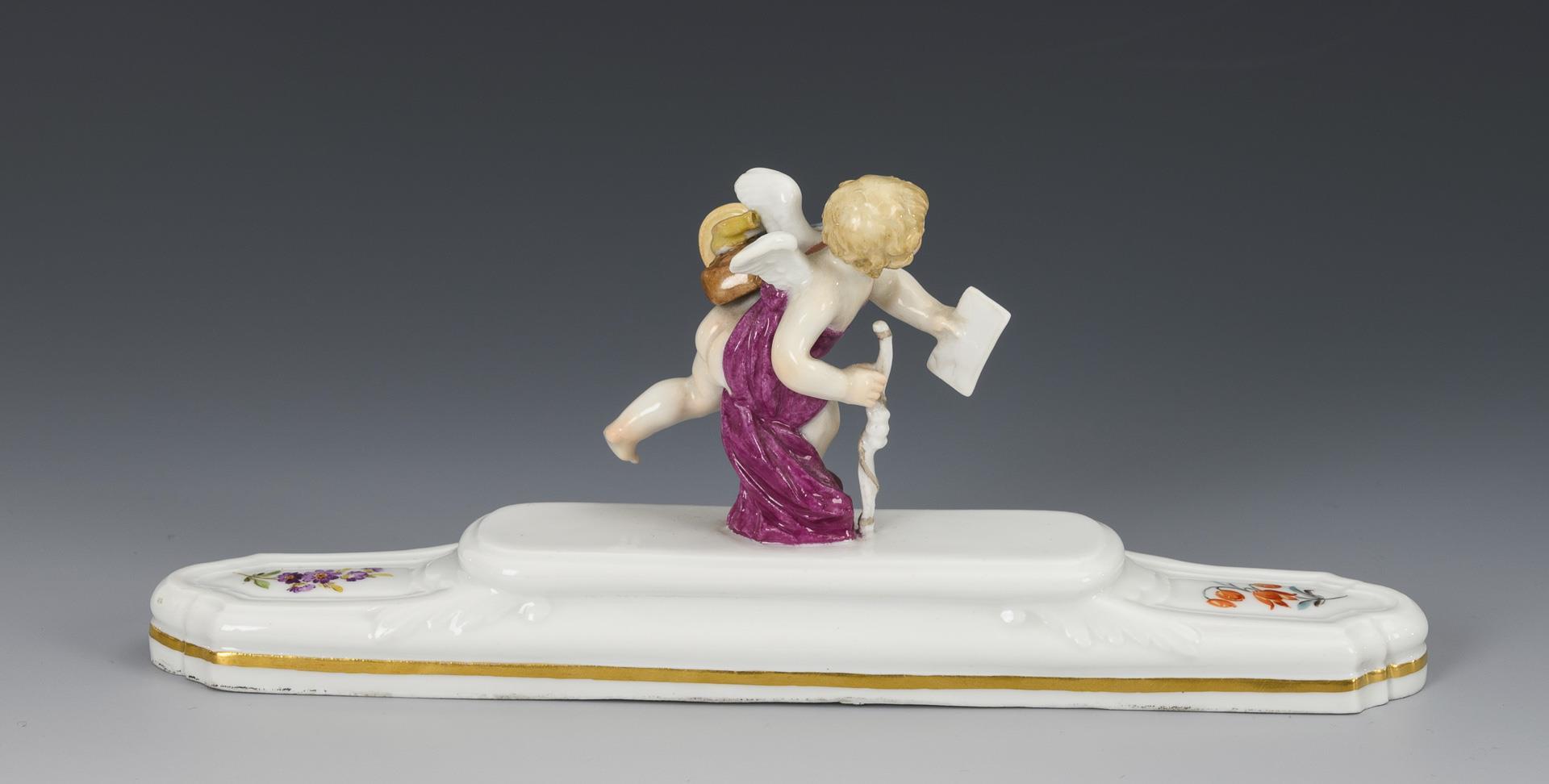 Rechteckiger Sockel mit der Figur eines Amorknaben mit Brief und Posthorn. Band des Posthorns minimal bestoßen.
