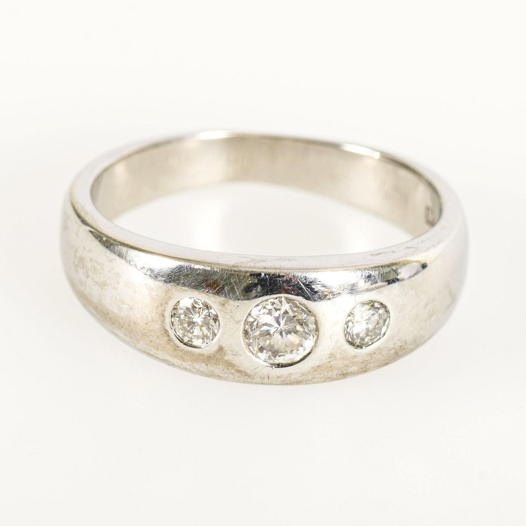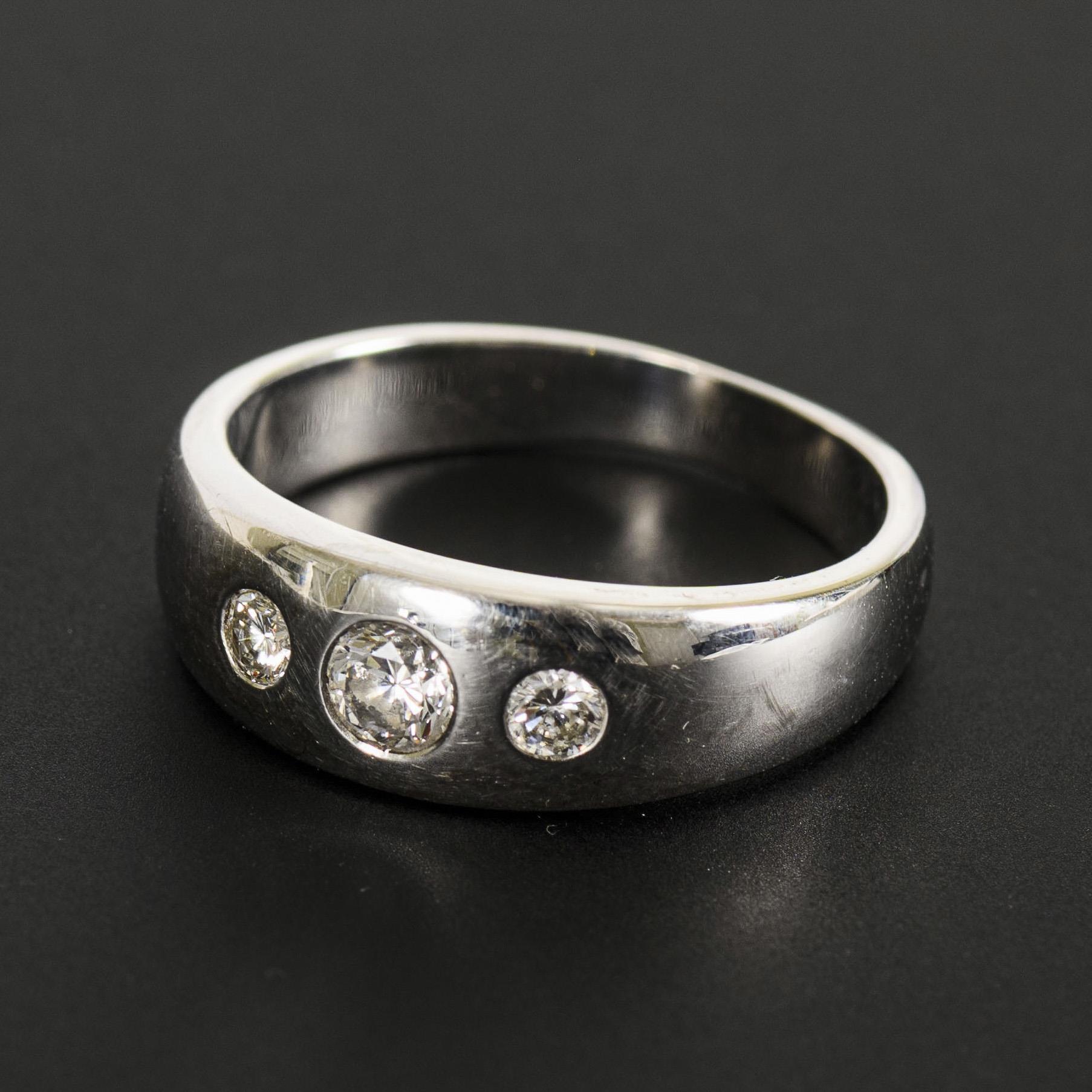 Breite Verlaufschiene mit 3 eingelassenen Brillanten. Tragespuren.