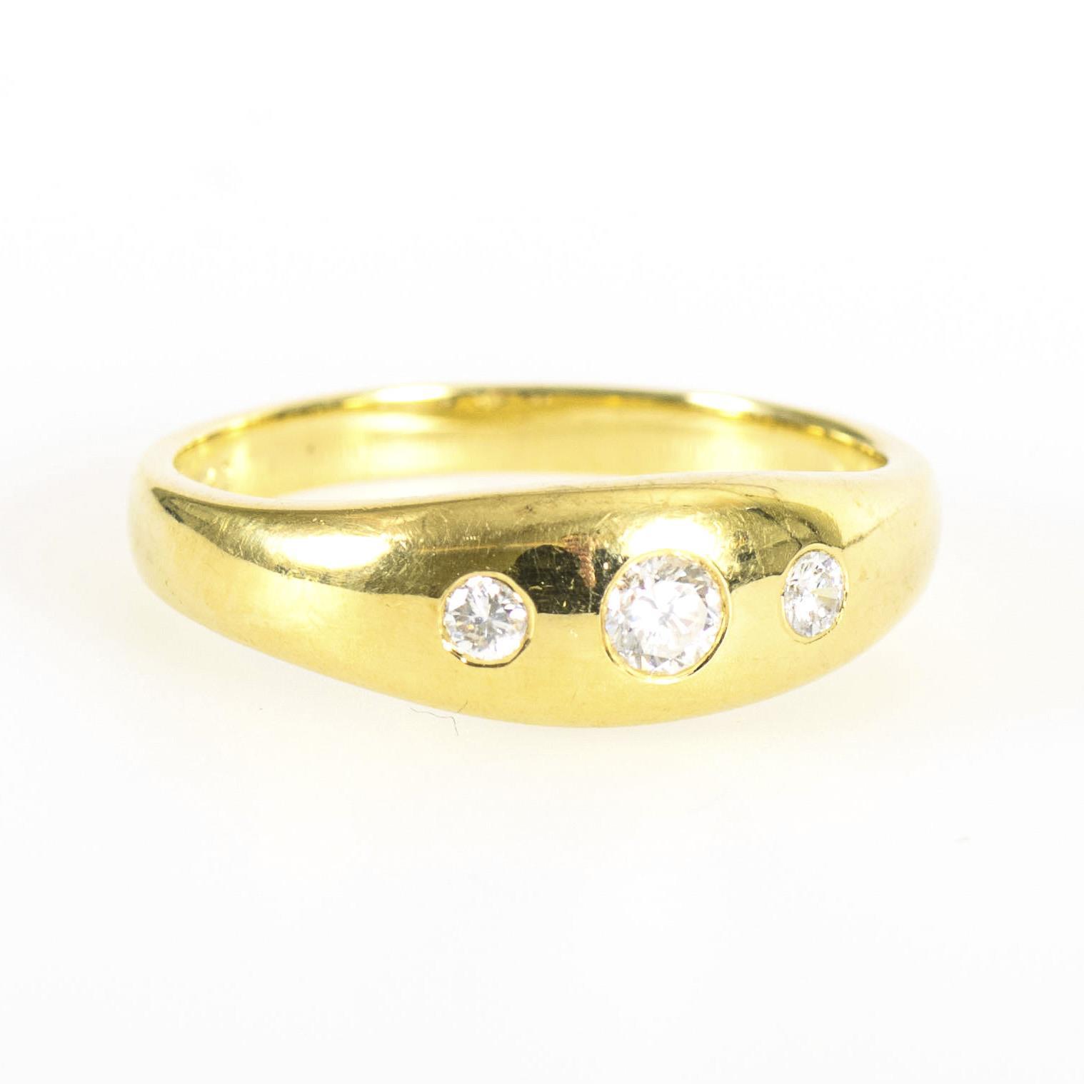 Wertig gearbeiteter Bandring mit 3 eingelassenen Brillanten.