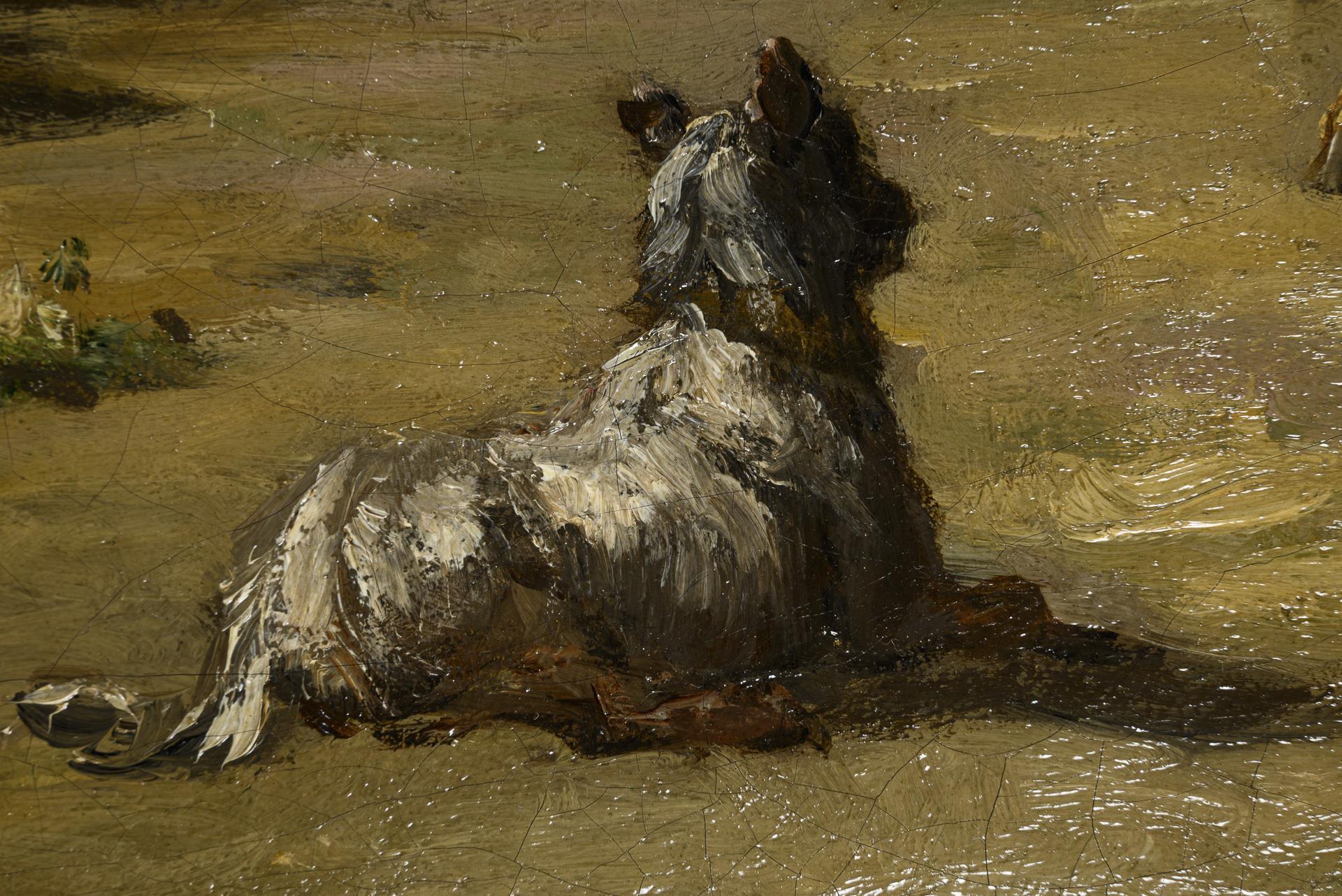 60 x 73,5 cm. Gerahmt : 96 x 110 cm (Goldstuckrahmen); 15 kg.