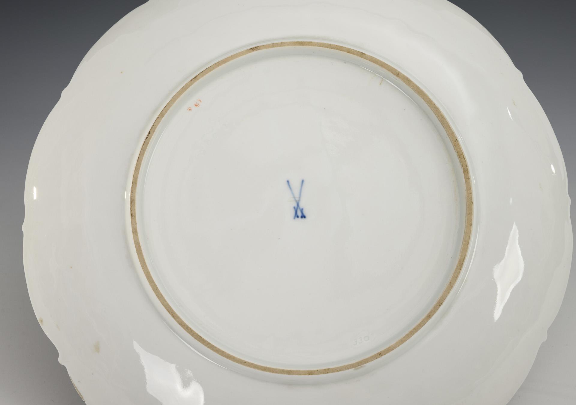 Teller mit Blumen und Rocaillerelief. Im Spiegel ein Blumenbukett mit Federmohn und Anemone.