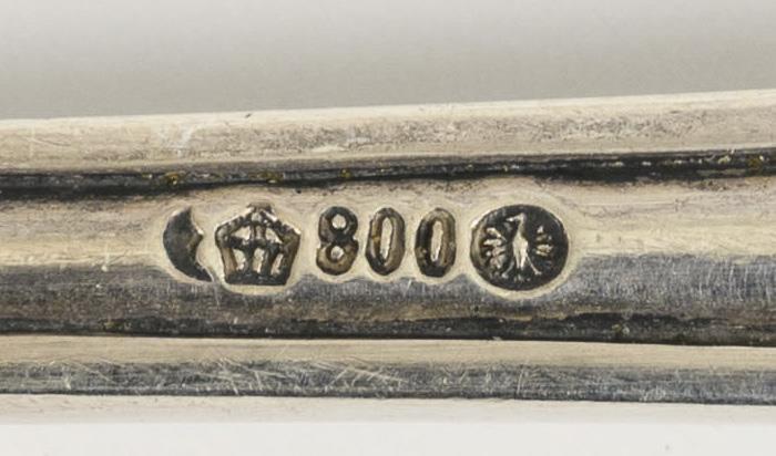 Halbmond/Krone/800/Firmenzeichen gepunzt. Um 1904. Modellnr. 3150.