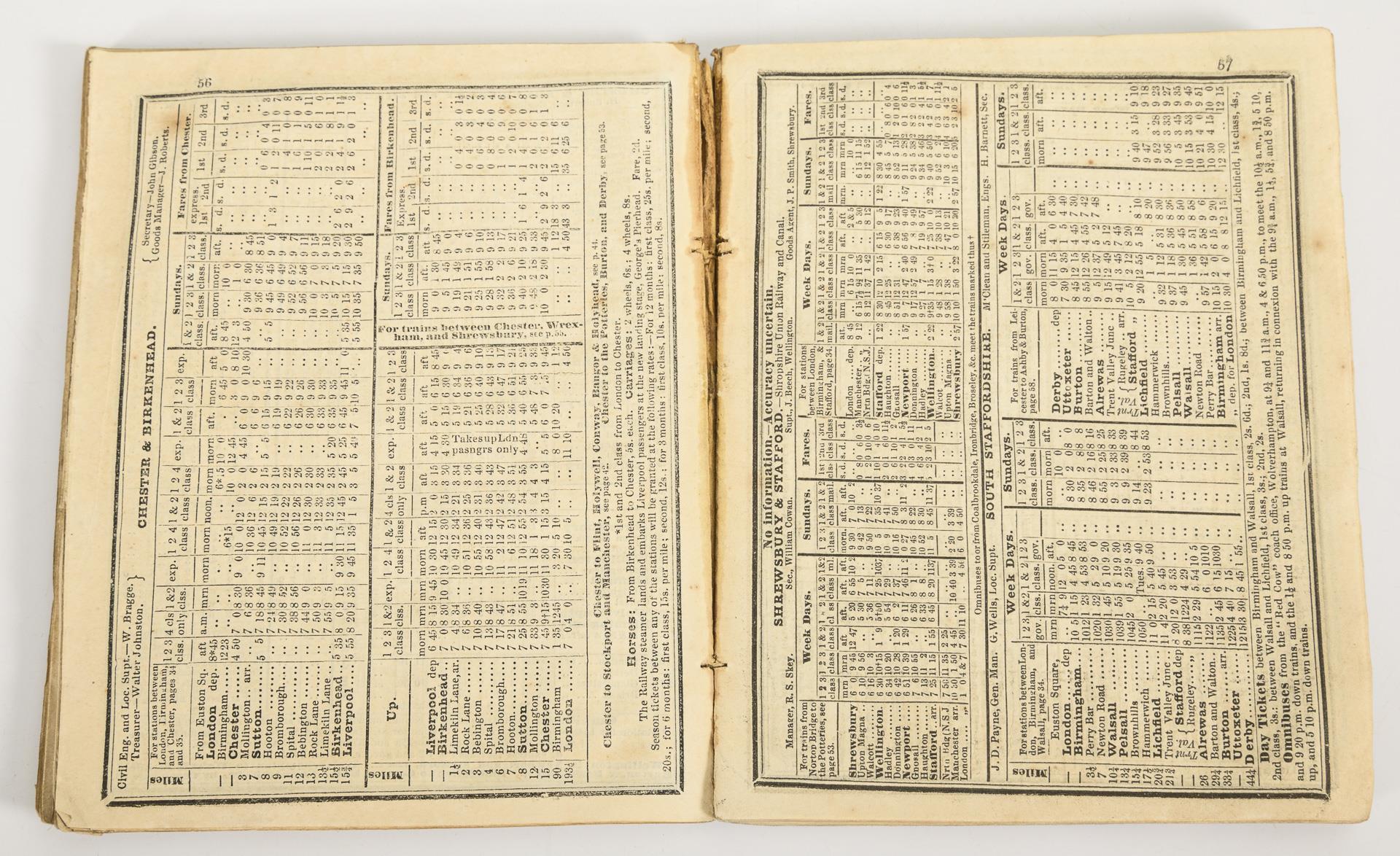 Eisenbahn-Fahrplan für Großbritannien, inclusive Karte des Schienennetzes. Broschurausgabe. Alters- und Gebrauchsspuren, aber altersgemäß guter Zustand.