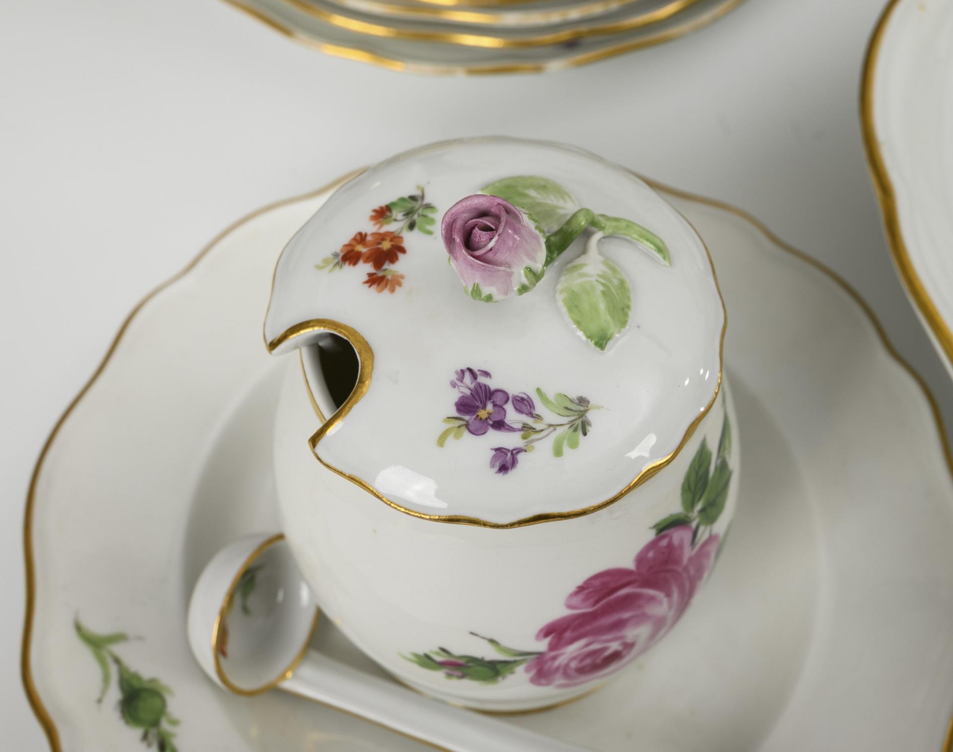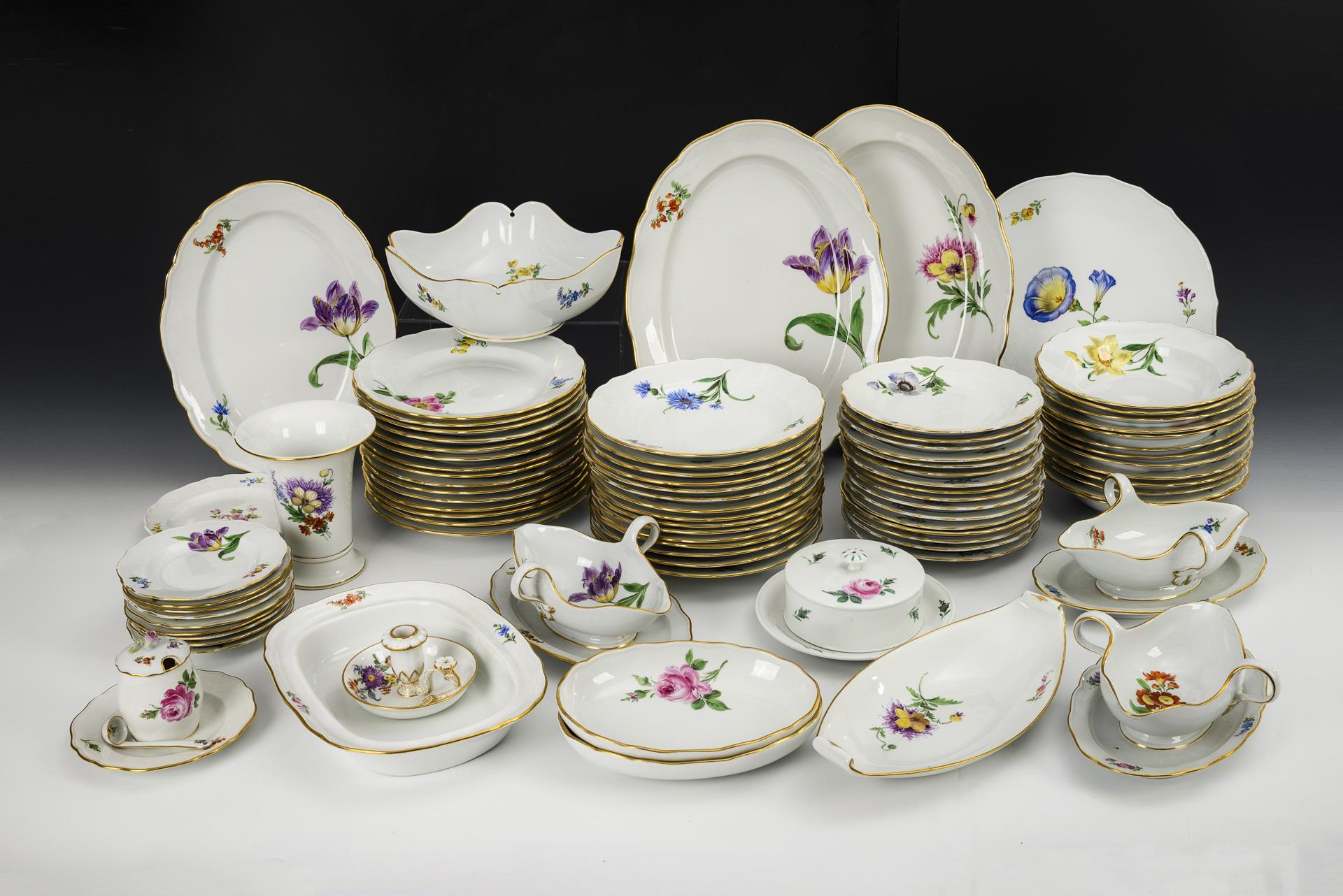Umfangreiches Speiseservice mit Blumenmalerei. Meissen.