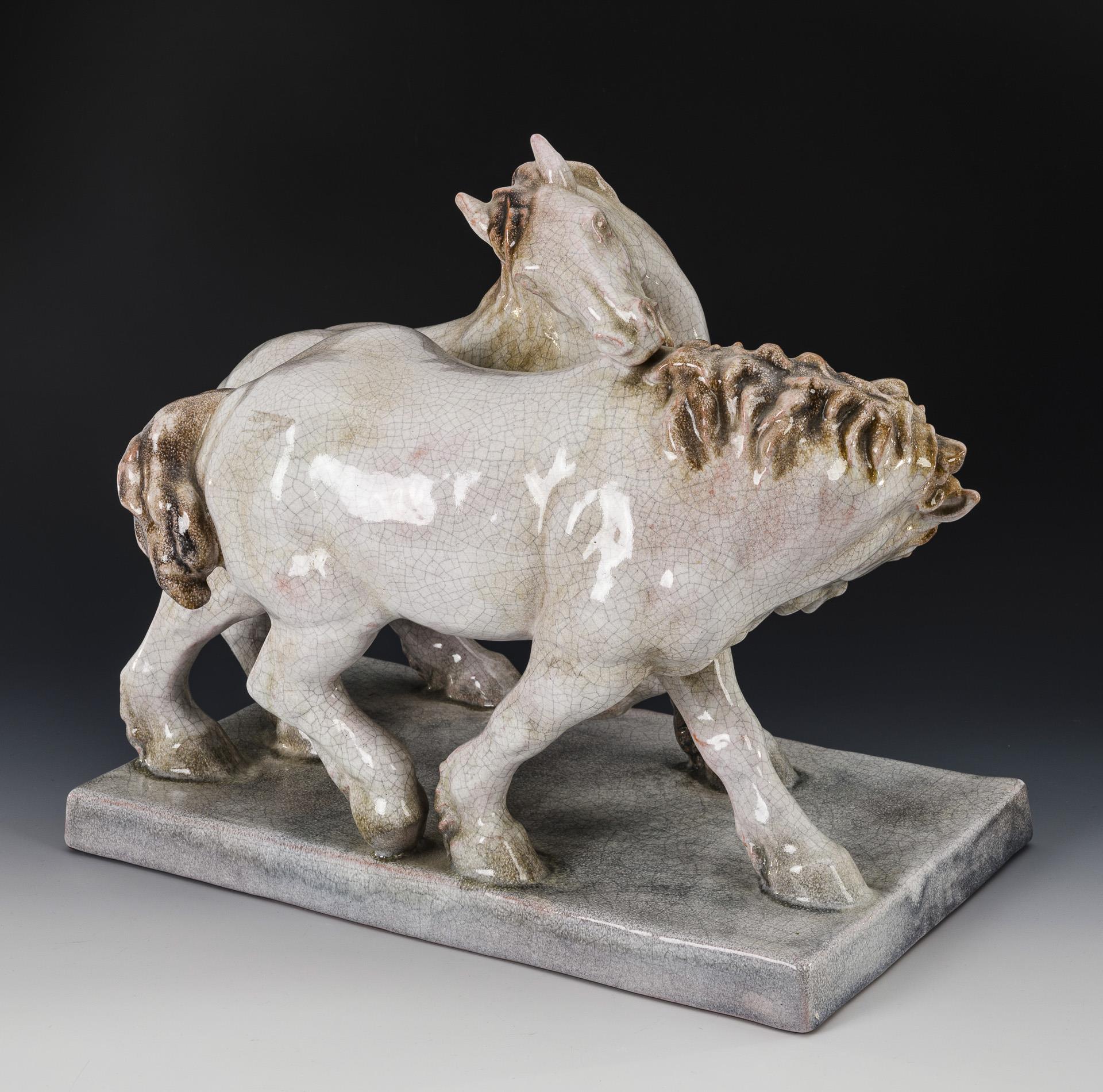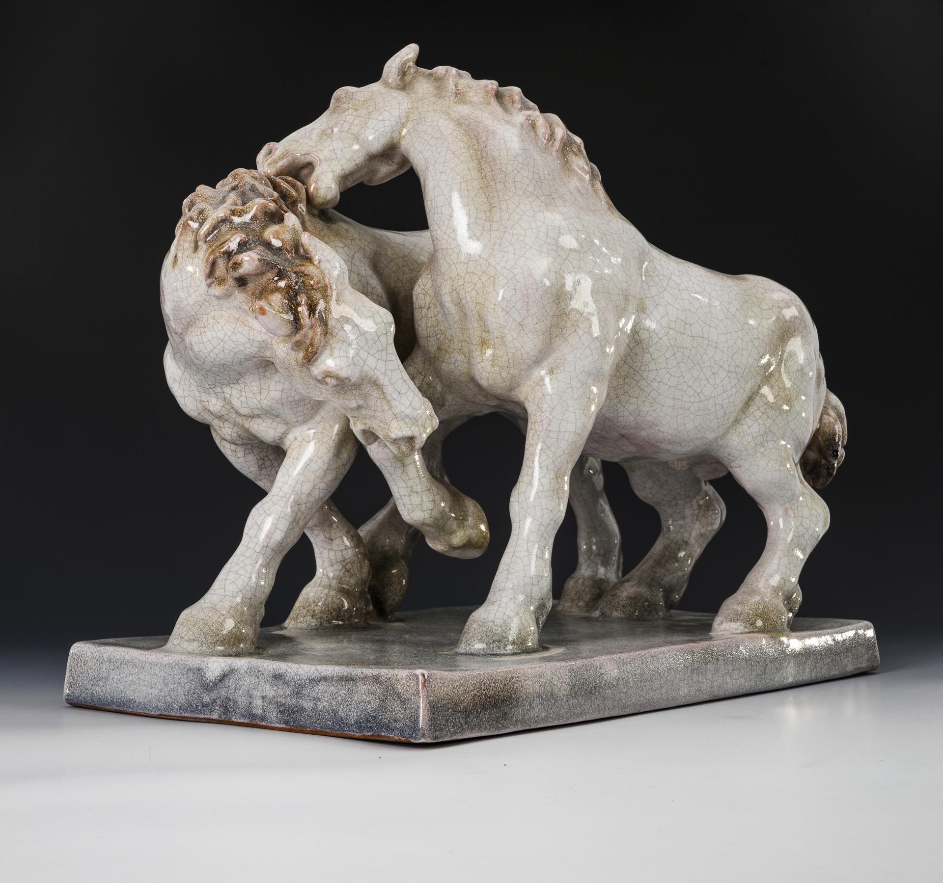 Große Art-déco-Pferdegruppe. Karlsruher Majolika.