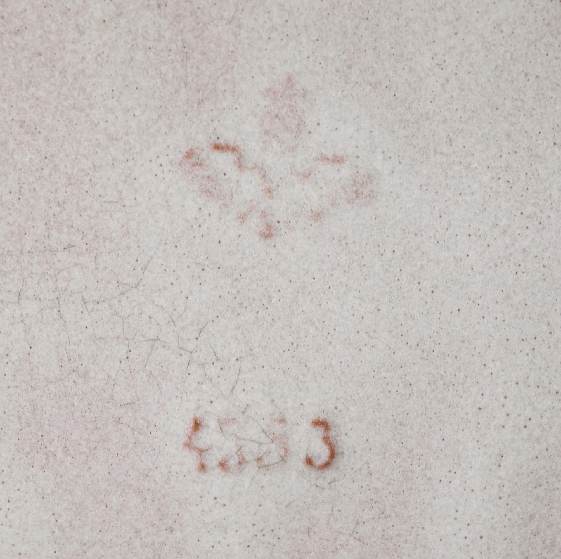 Roter Scherben, weiße Krakelee-Glasur, dezent braun und grau staffiert. 41 x 51 x 31 cm. 9,9 kg.