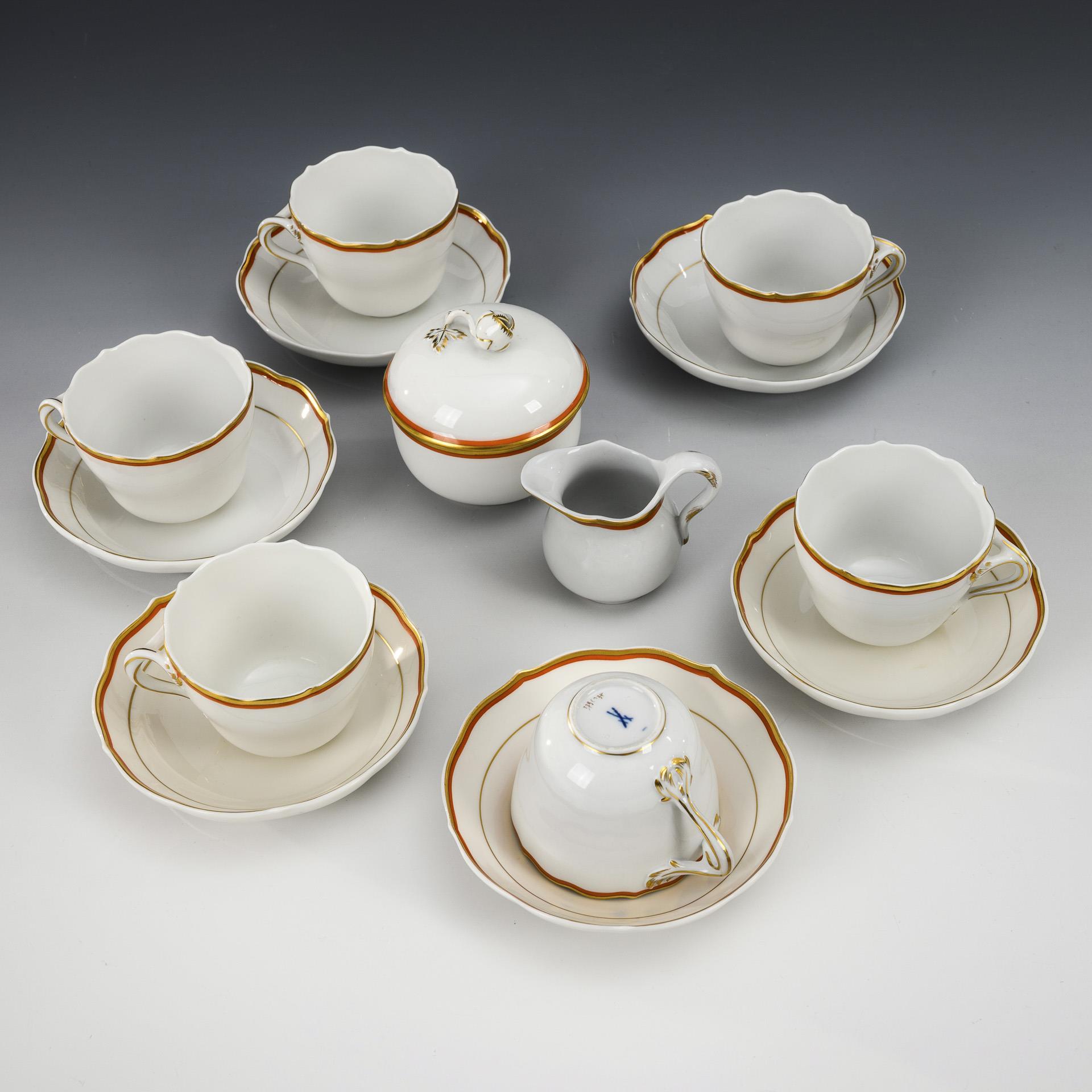 14 Teile eines Mokkaservice mit Korallenrand. Meissen.
