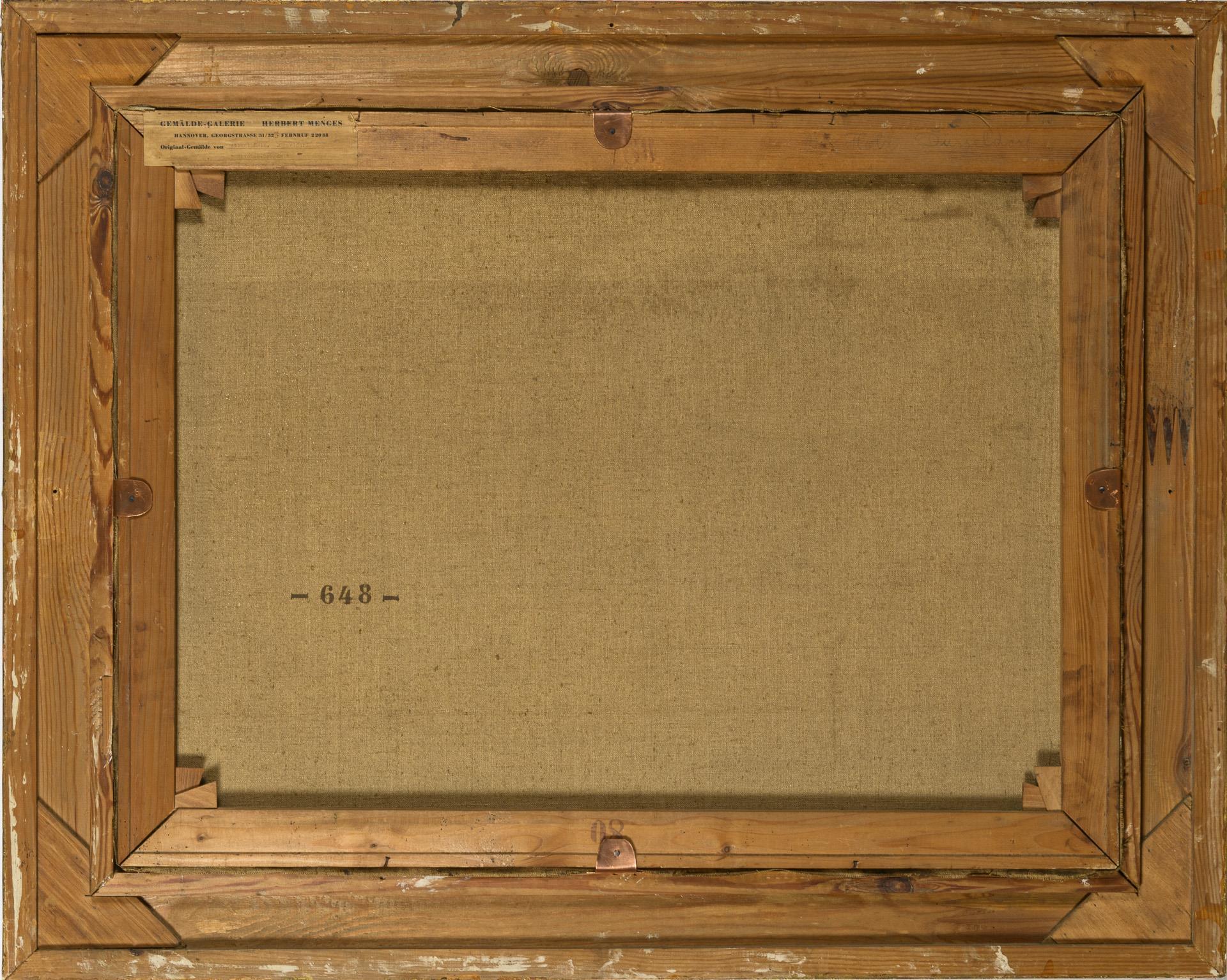 Öl/Leinwand. Rechts unten signiert mit Zusatz Düsseldorf, verso auf Klebezettel der Galerie Menges Hannover bezeichnet/betitelt.