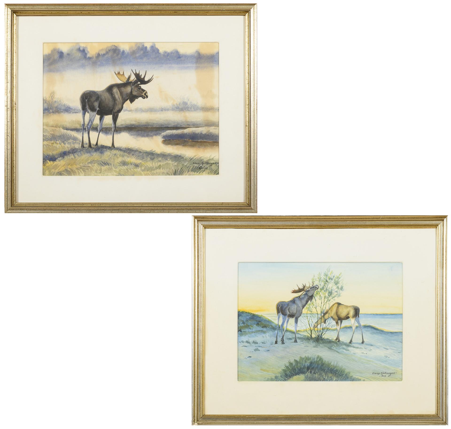 Zwei Bilder mit Elchen nahe dem Wasser
