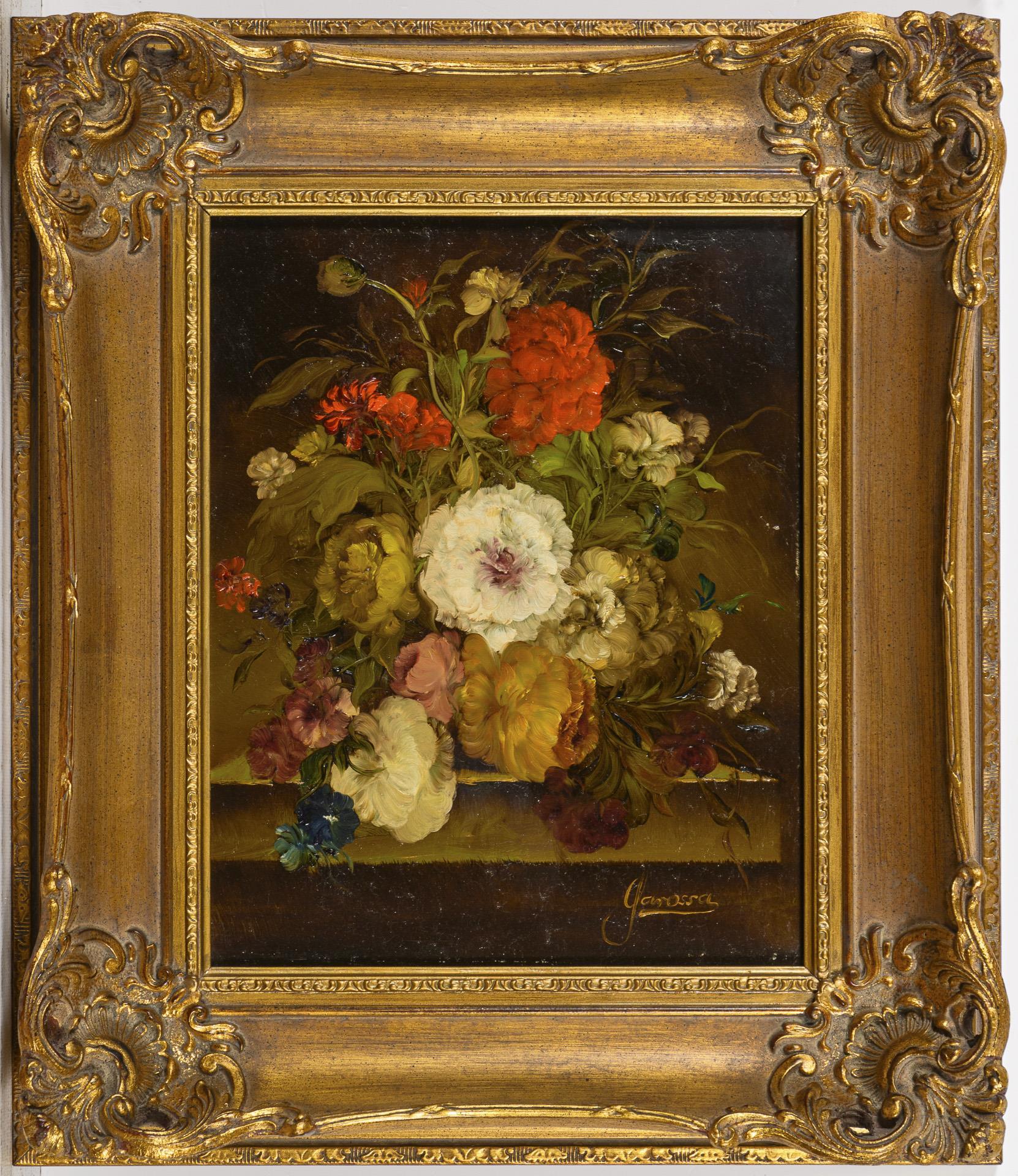 Kleiner Blumenstrauß auf einem Sims in der Art der Altmeister.