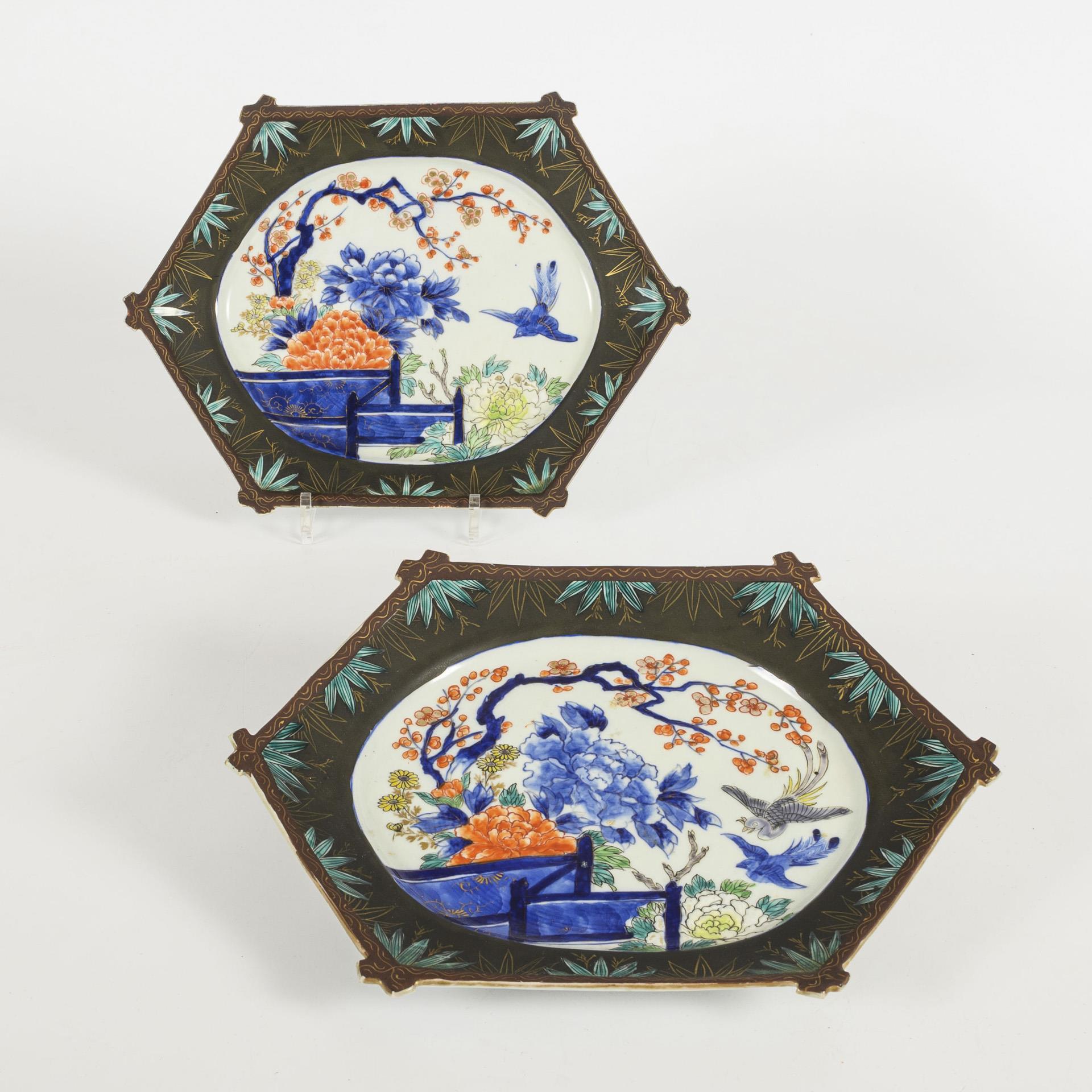 Paar sechseckige Schalen.