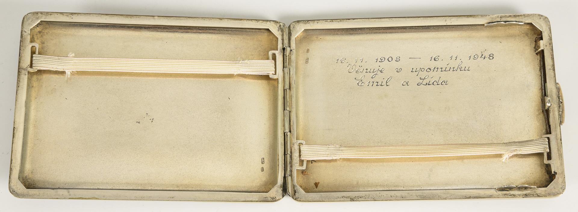 Fein gravierte Etuis. 1x mit Monogrammgravur "IB" (1x 11,5 x 8 cm). 1x mit innseitiger, wohl slowenischer Widmung und Datierung "16.11. 1908-16.11. 1948" (1 x 11 x 8 cm). Minimal gedellt.