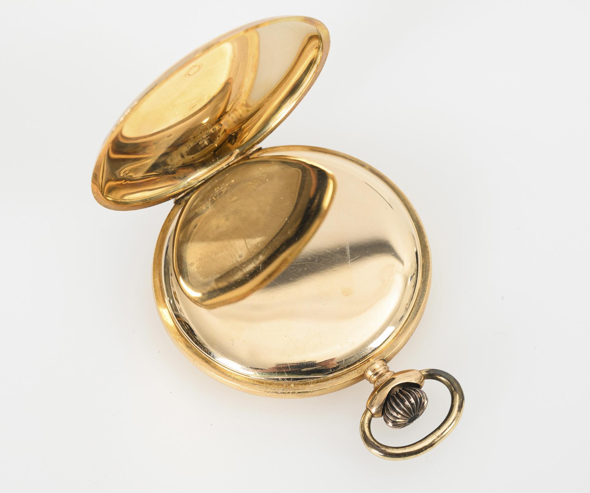 Glattes Gehäuse mit Staubdeckel aus Gold. Minimale Alters- und Gebrauchsspuren.