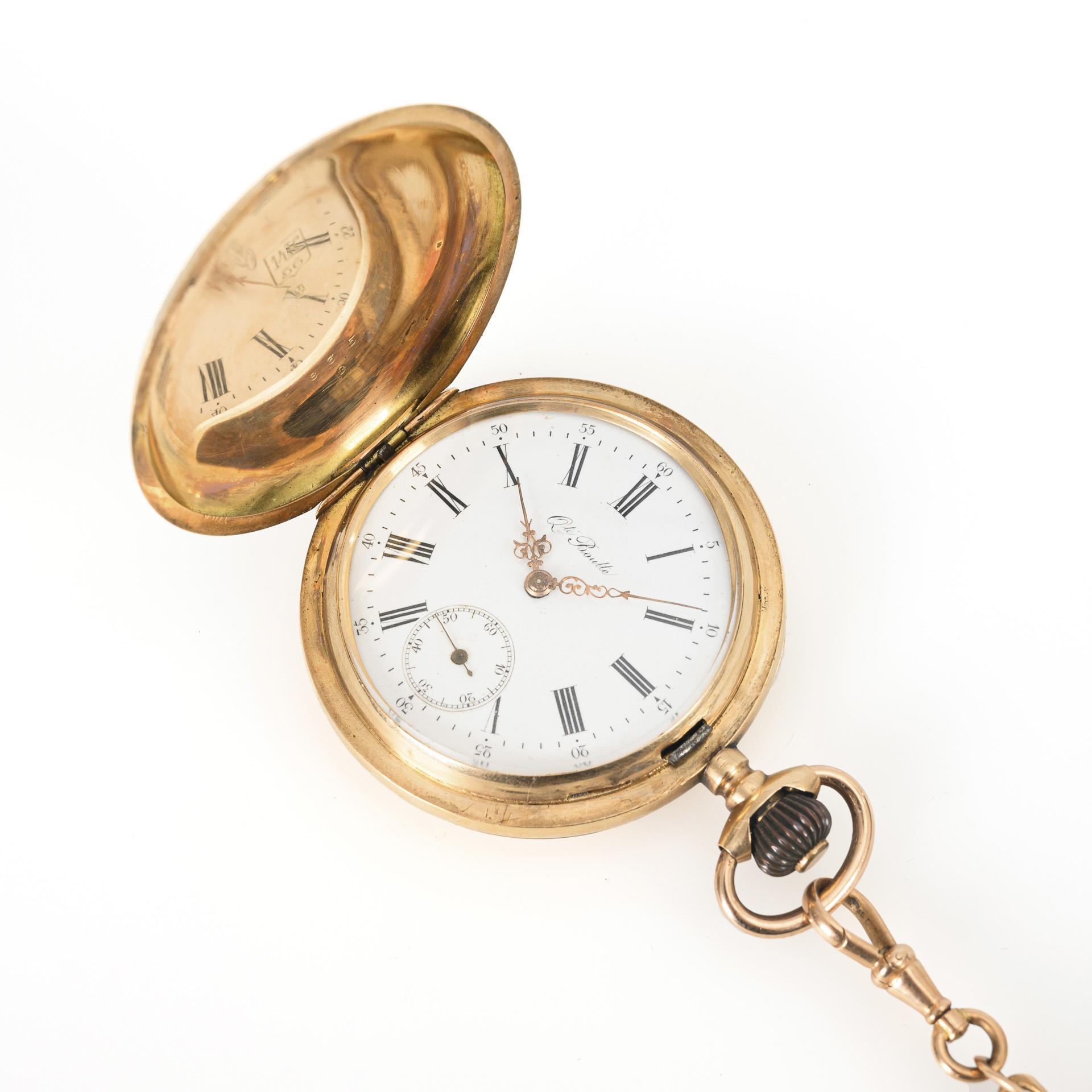Goldene Savonnette mit goldener Uhrenkette.
