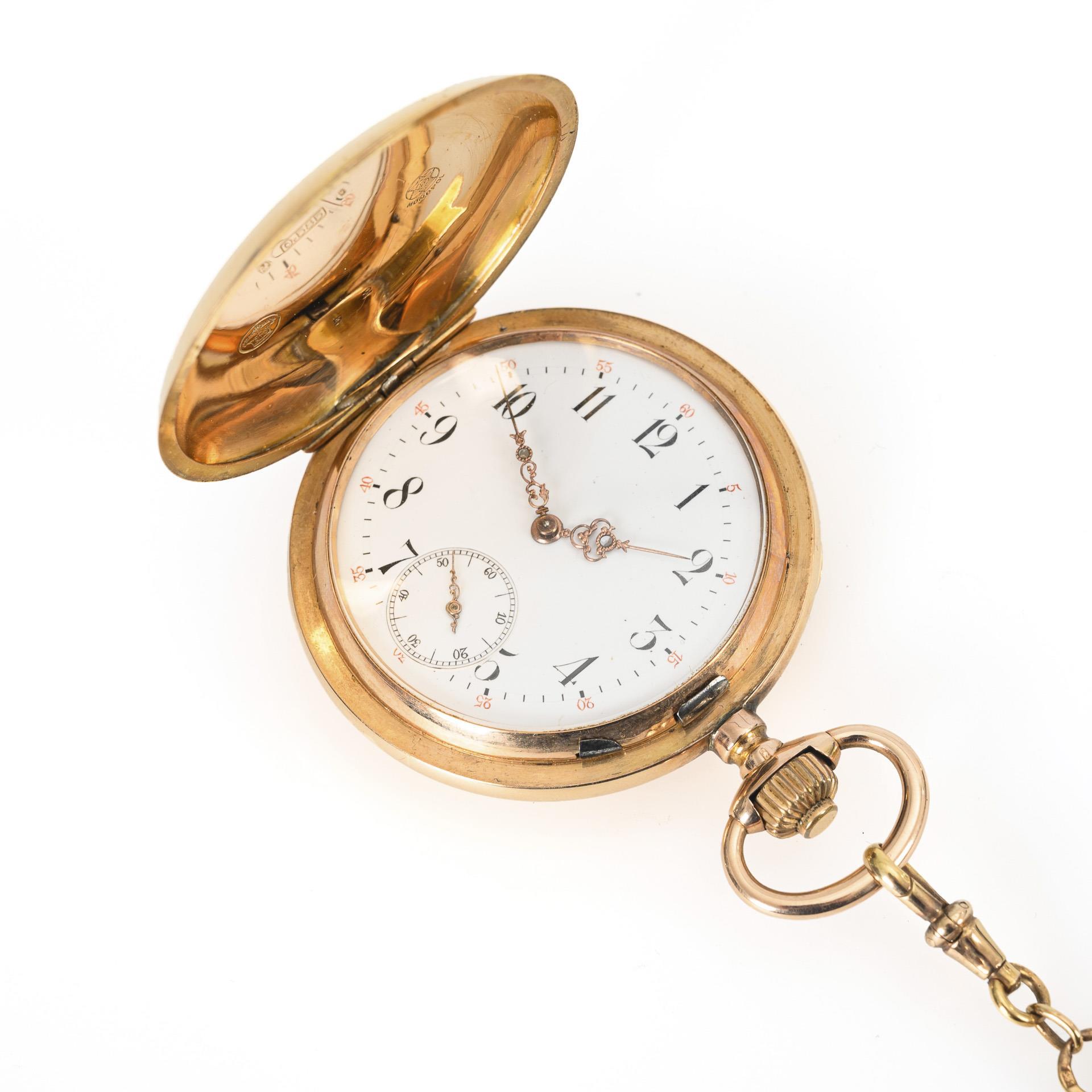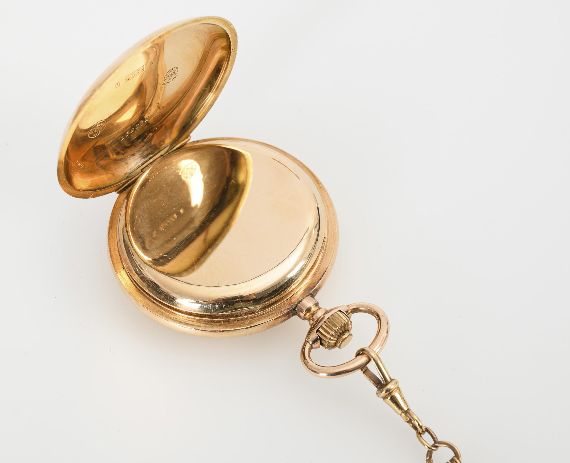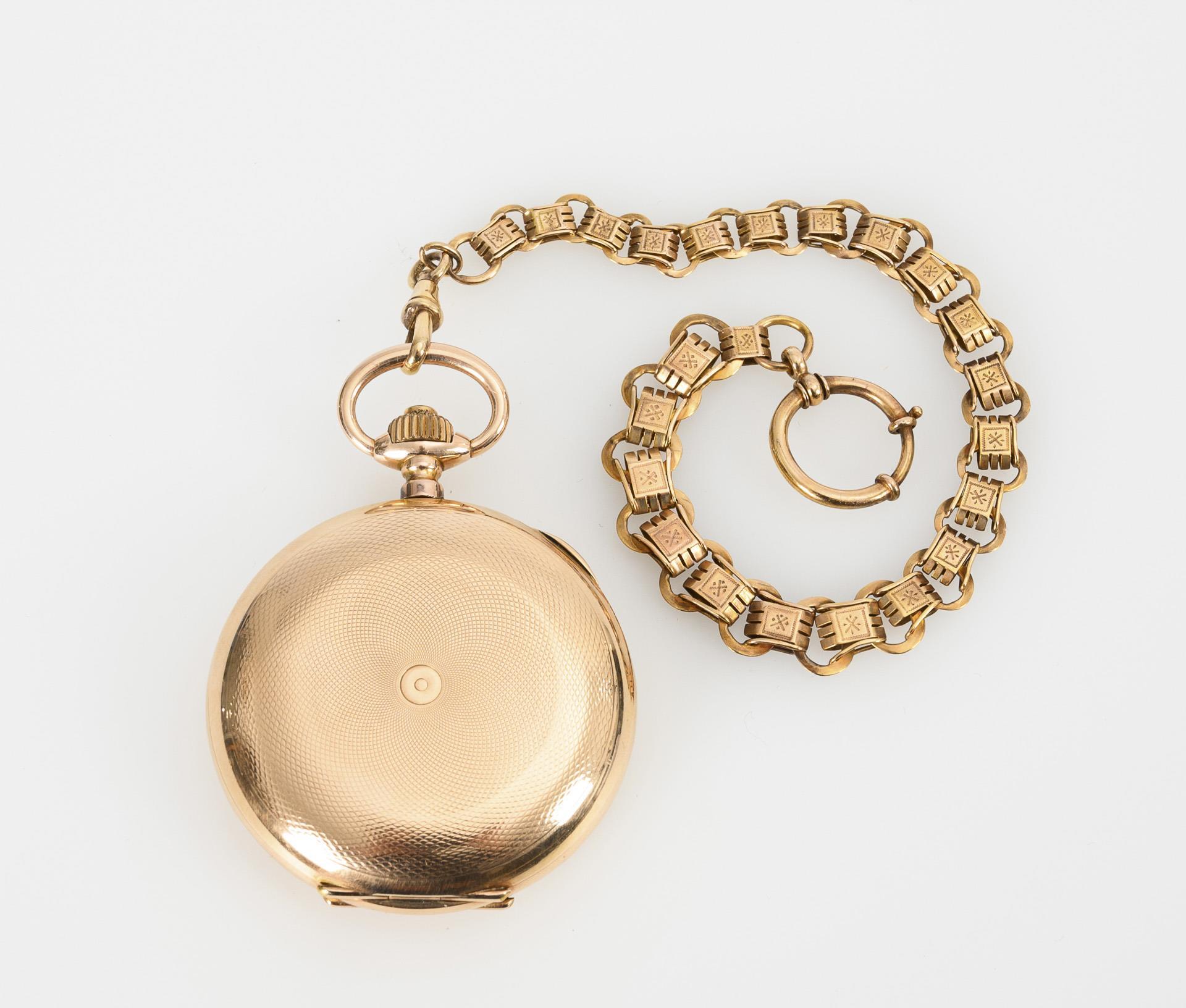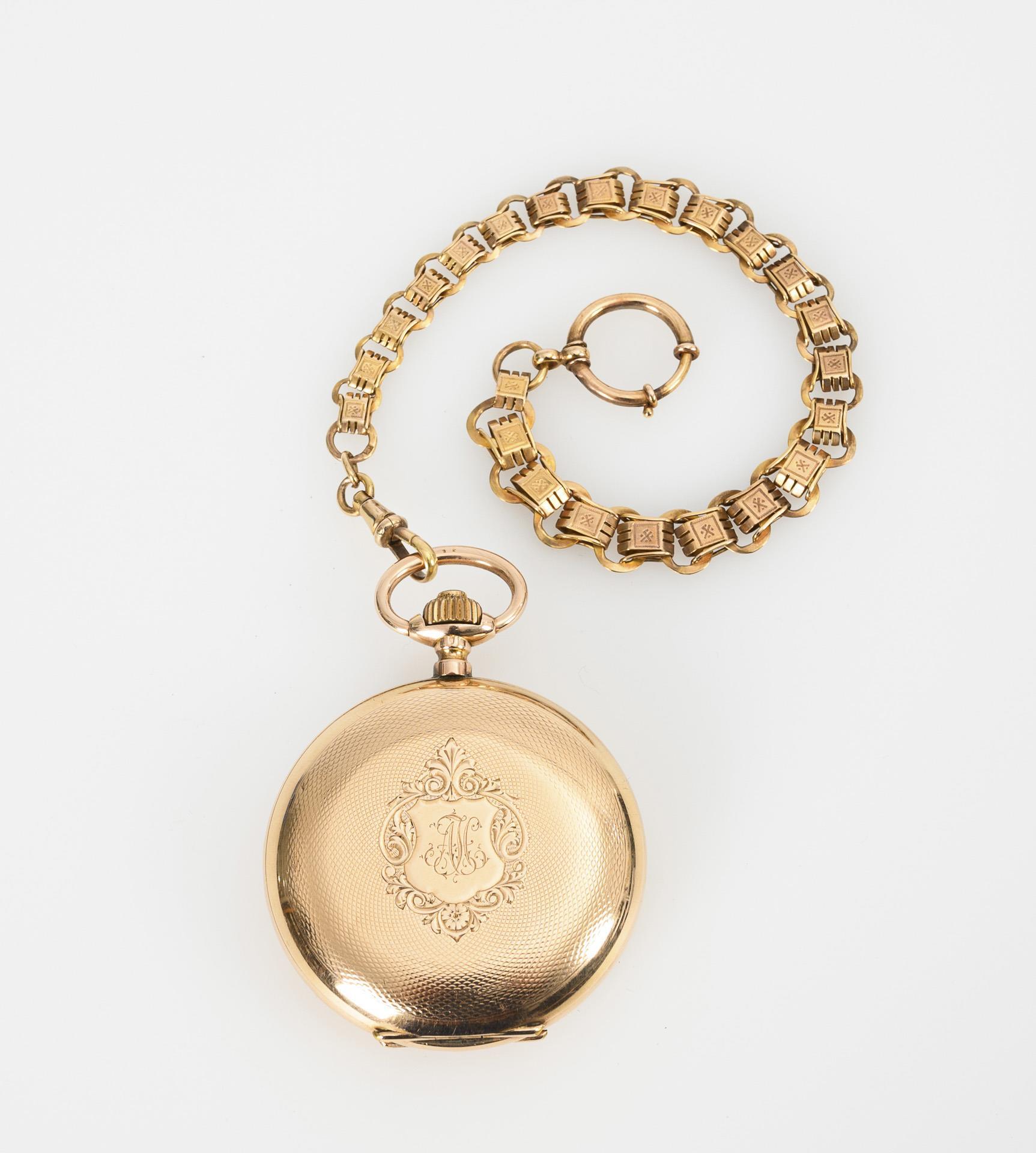 Goldene Savonnette mit goldener Uhrenkette. Dürrstein & Co.