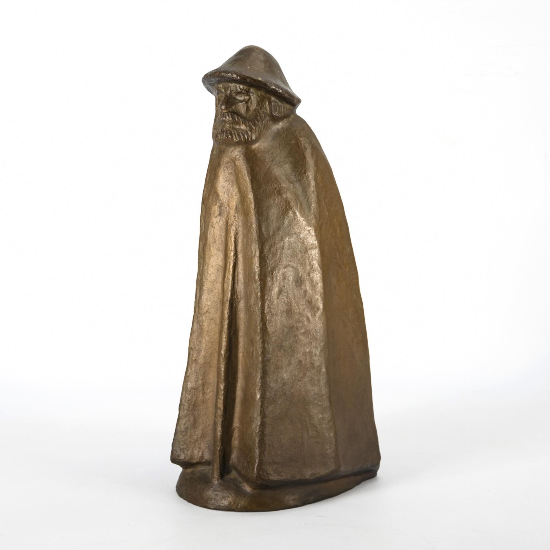 Bärtiger Hirte mit Hut und im voluminösen Mantel.