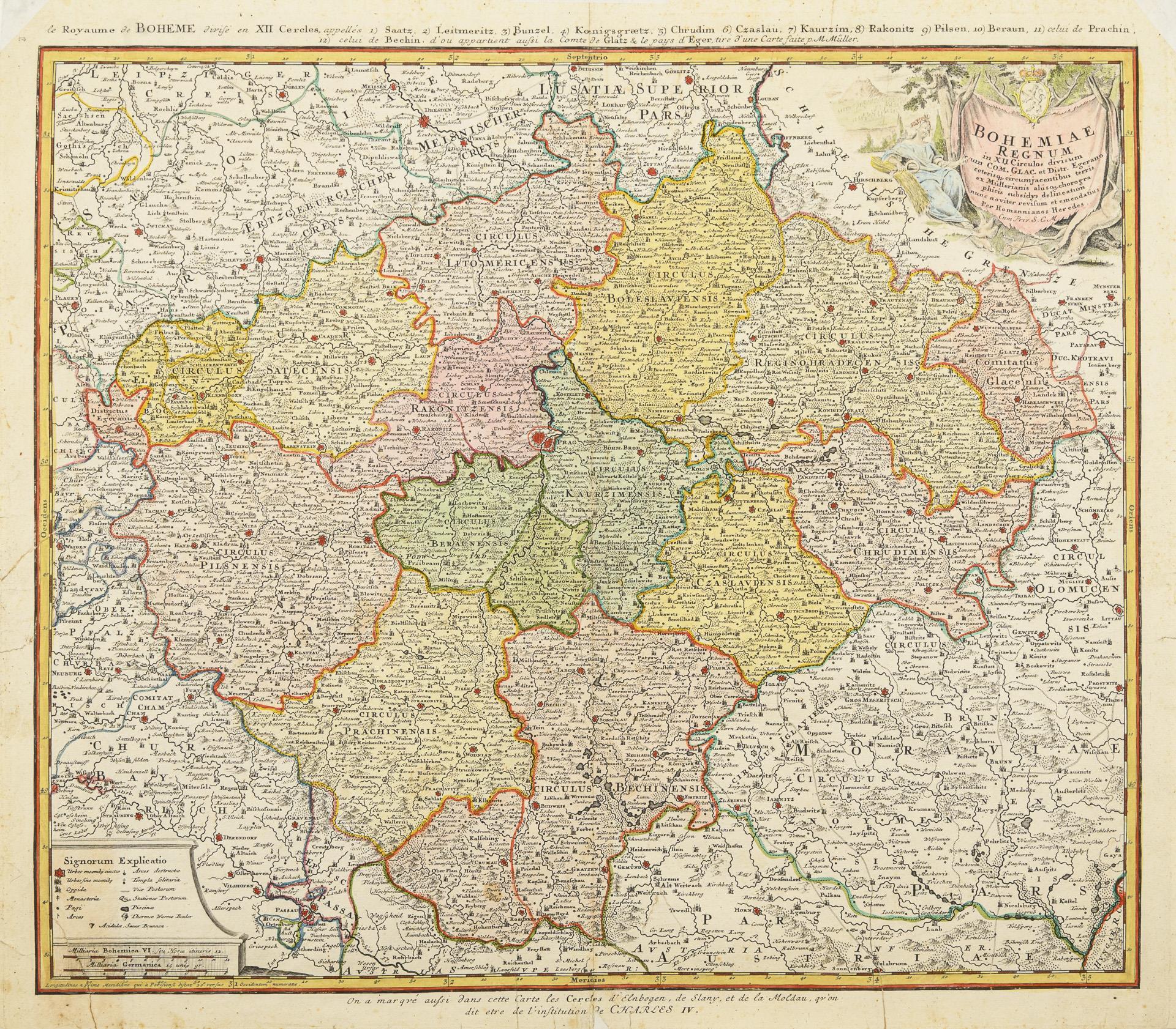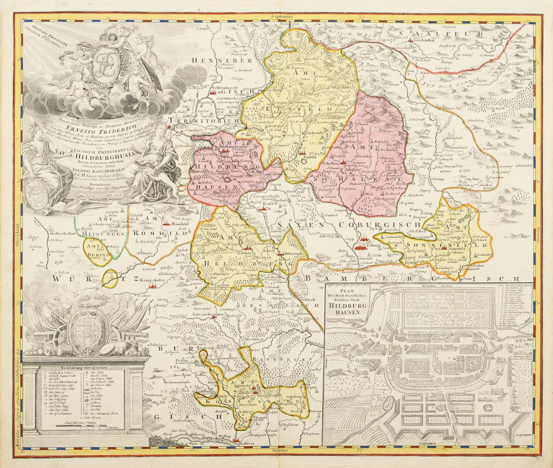 Hohmann: "Circuli Franconia", (57,5 x 49,5 cm; Ppt: 73 x 66 cm). / Hohmann: "Principatus Saxo-Hildburghusian", (48 x 57 cm; Ppz.65 x 74 cm). / Hohmann Erben: "Bohemiae Regnum", (49 x 56 cm; Ppt. 64,5 x 71,5 cm).