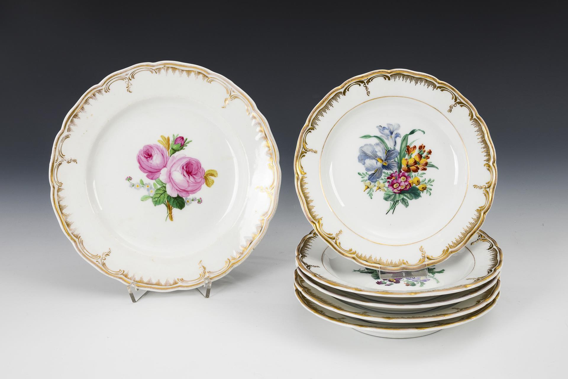 1+5 Teller mit Blumenmalerei. KPM Berlin.