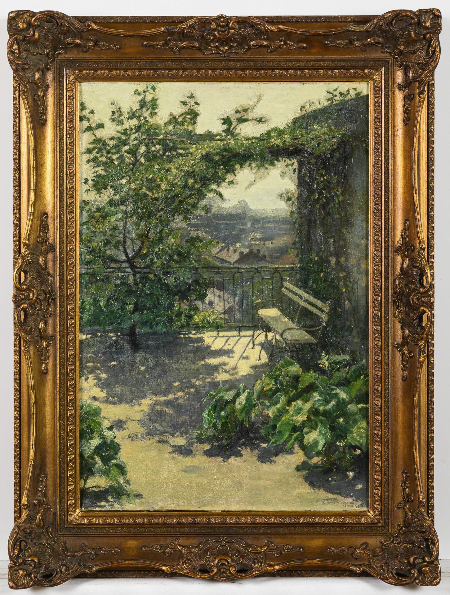 Begrünte Terrasse mit Blick über die Stadt