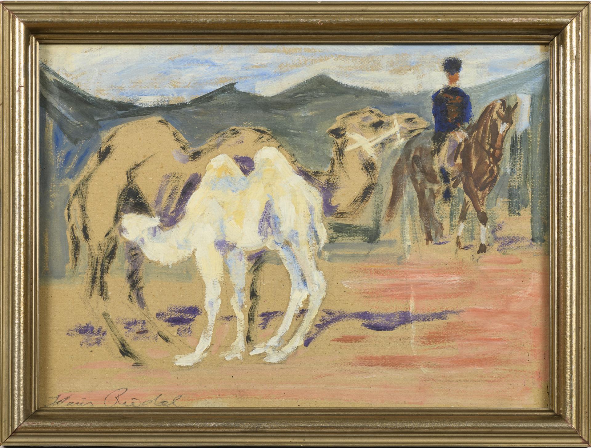 Undeutlich signiert: Dressurreiter mit Kamelen