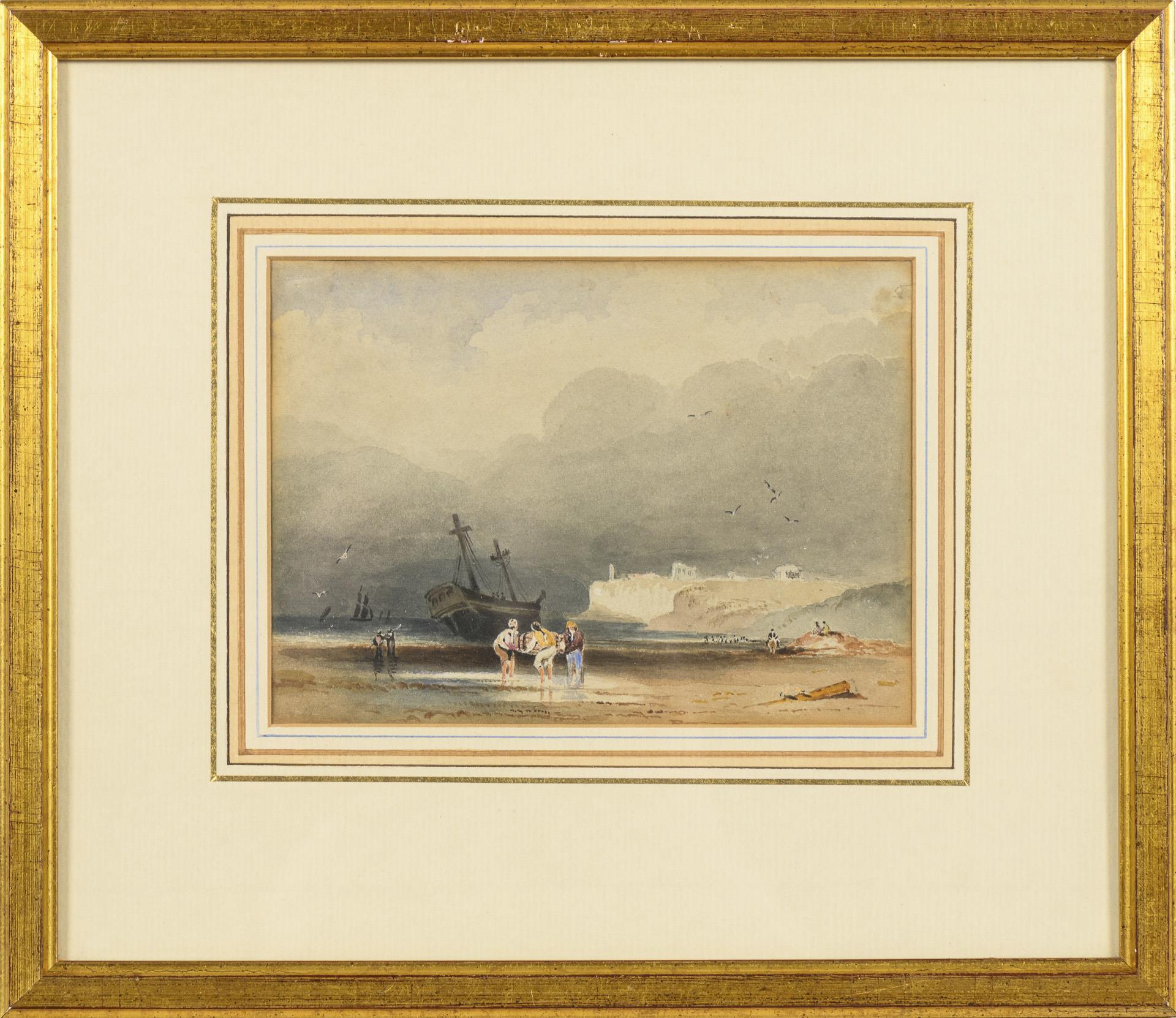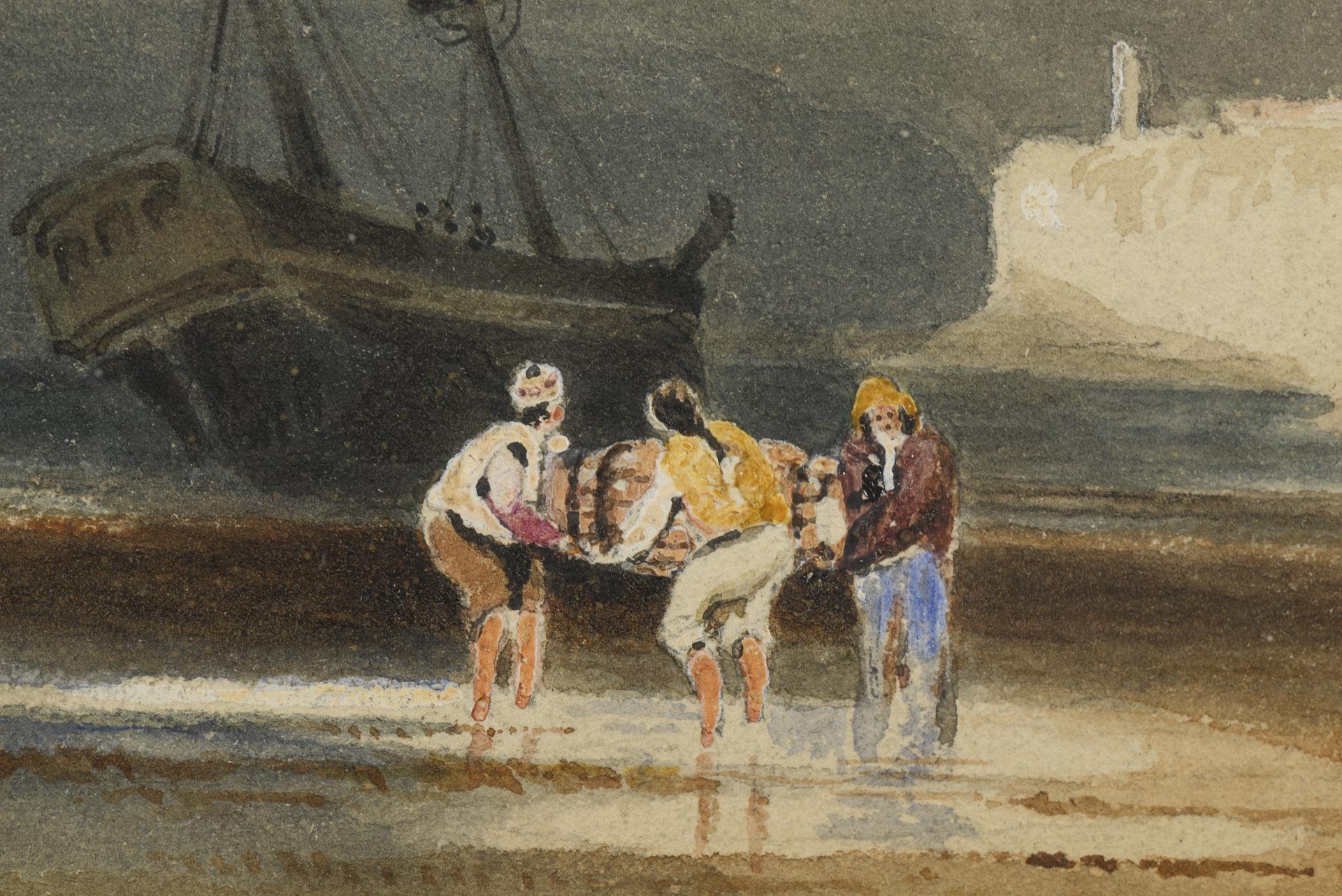 Aquarellist 19. Jh.: Fischer an der Küste