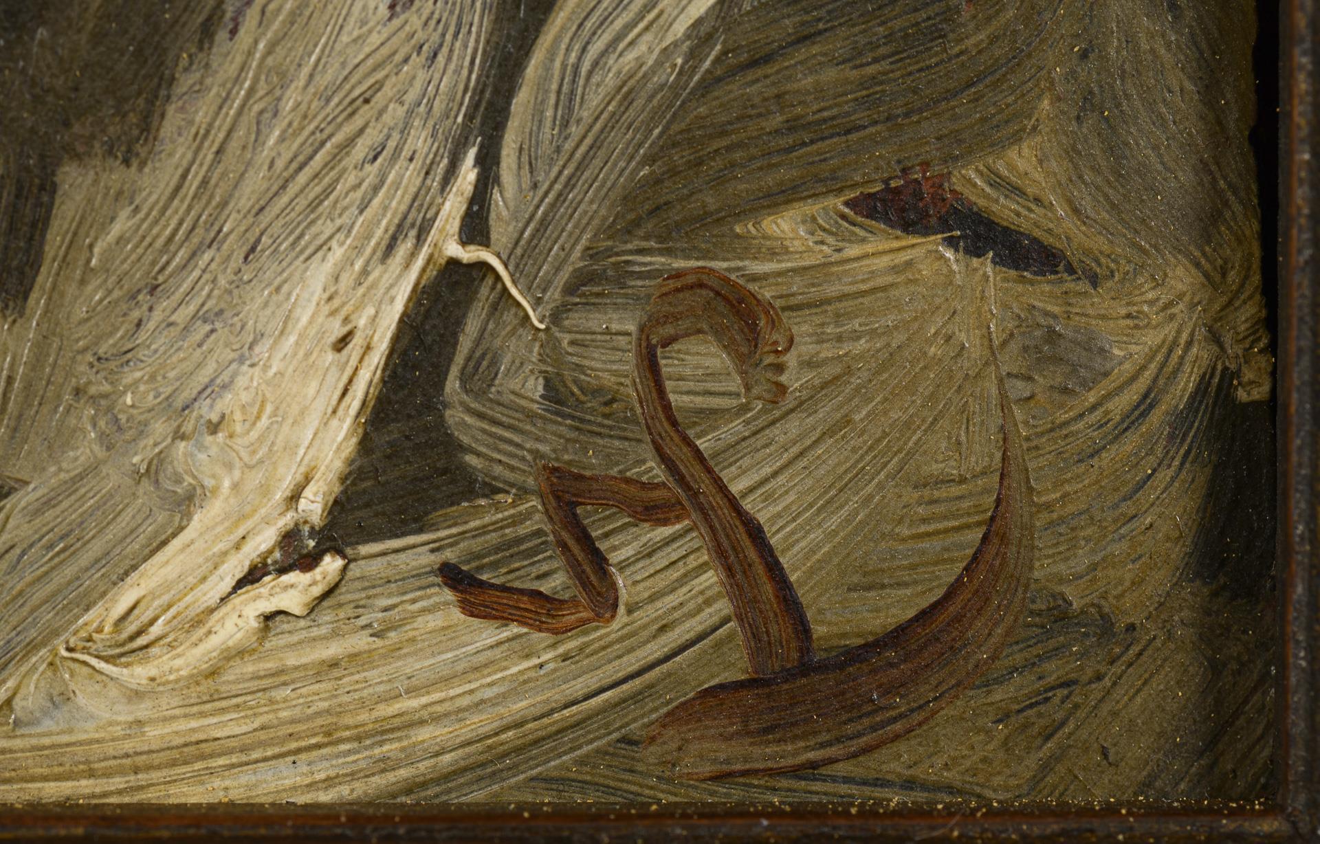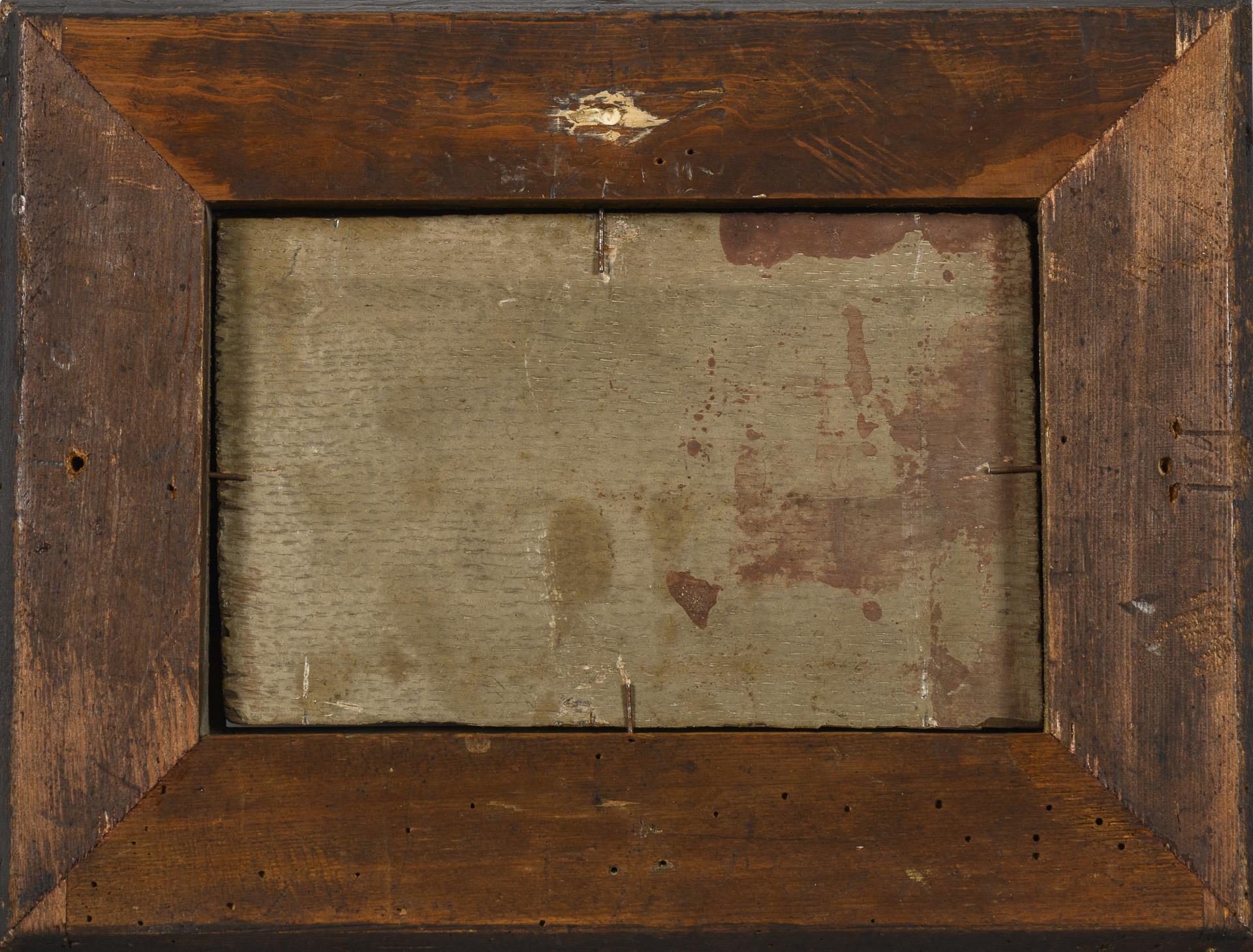 18,5 x 11,5 cm. Gerahmt : 28,5 x 21,5 cm (dunkler Rahmen); 0,4 kg.