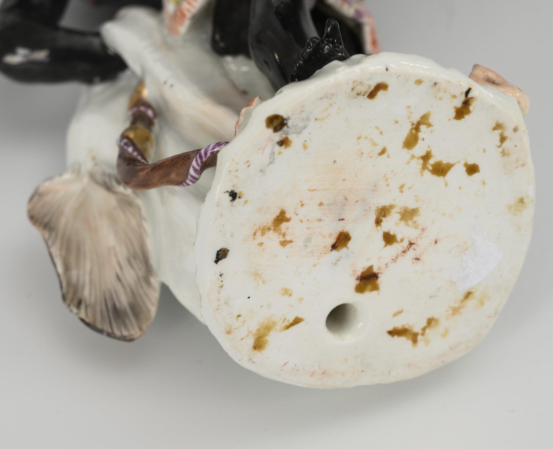 Stehender Afrikaner mit Federschmuck und Bogen, eine Elefantenhaut tragend. Große Zehe des rechten Fußes restauriert, Federschmuck am Kopf bestoßen, Pfeil (?) in der linken Hand bestoßen.